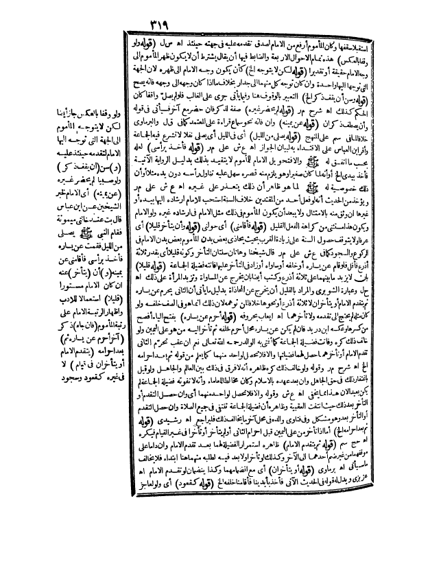 وَقَوْلُهُ: وَلَوْ خَالَفَ ذَلِكَ كُرِهَ ظَاهِرُهُ أَنَّهُ لَا فَرْقَ فِي ذَلِكَ بَيْنَ الْعَالِمِ، وَالْجَاهِلِ وَلَوْ قِيلَ بِاغْتِفَارِ ذَلِكَ فِي حَقِّ الْجَاهِلِ وَإِنْ بَعُدَ عَهْدُهُ بِالْإِسْلَامِ وَكَانَ مُخَالِطًا لِلْعُلَمَاءِ وَأَنَّهُ لَا تَفُوتُهُ فَضِيلَةُ الْجَمَاعَةِ لَمْ يَكُنْ بَعِيدًا لِأَنَّ هَذَا مِمَّا يَخْفَى اهـ. ع ش وَقَوْلُهُ: وَإِلَّا فَلَا تَحْصُلُ لِوَاحِدٍ مِنْهُمَا أَيْ وَإِنْ حَصَلَ التَّقَدُّمُ أَوْ التَّأَخُّرُ بَعْدَ ذَلِكَ حَيْثُ انْتَفَتْ الْعَقَبِيَّةُ وَظَاهِرُهُ أَنَّ فَضِيلَةَ الْجَمَاعَةِ تَنْتَفِي فِي جَمِيعِ الصَّلَاةِ وَإِنْ حَصَلَ التَّقَدُّمُ أَوْ التَّأَخُّرُ بَعْدُ وَهُوَ مُشْكِلٌ، وَفِي فَتَاوَى وَالِدِهِ فِي مَحَلٍّ آخَرَ مَا يُخَالِفُ ذَلِكَ فَلْيُرَاجَعْ اهـ. رَشِيدِيٌّ.
