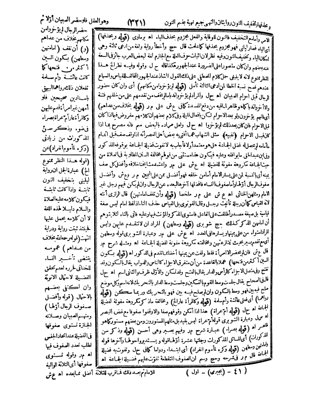 وَبِحَذْفِهَا وَتَخْفِيفِ النُّونِ رِوَايَتَانِ. وَالنُّهَى جَمْعُ نُهْيَةٍ بِضَمِّ النُّونِ وَهُوَ الْعَقْلُ فَلَوْ حَضَرَ الصِّبْيَانُ أَوَّلًا ثُمَّ حَضَرَ الرِّجَالُ لَمْ يُؤَخَّرُوا مِنْ مَكَانِهِمْ بِخِلَافِ مَنْ عَدَاهُمْ
