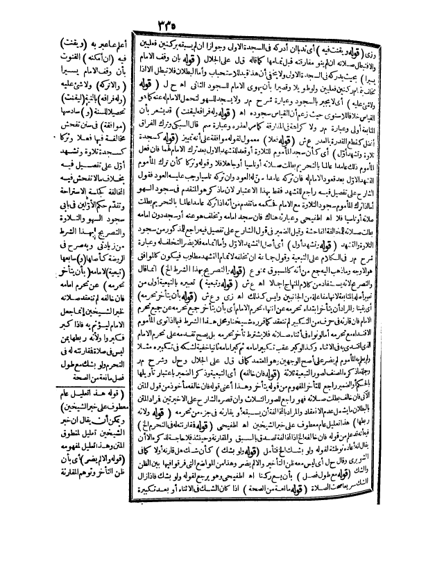 (وَ) سَادِسُهَا (مُوَافَقَةٌ فِي سُنَنٍ تَفْحُشُ مُخَالَفَةٌ فِيهَا) فِعْلًا وَتَرْكًا كَسَجْدَةِ تِلَاوَةٍ وَتَشَهُّدٍ أَوَّلَ عَلَى تَفْصِيلٍ فِيهِ بِخِلَافِ مَا لَا تَفْحُشُ فِيهِ الْمُخَالَفَةُ كَجِلْسَةِ الِاسْتِرَاحَةِ وَتَقَدَّمَ حُكْمُ الْأَوَّلَيْنِ فِي بَابَيْ سُجُودِ السَّهْوِ وَالتِّلَاوَةِ وَالتَّصْرِيحُ بِهَذَا الشَّرْطِ مِنْ زِيَادَتِي. وَبِهِ صَرَّحَ فِي الرَّوْضَةِ كَأَصْلِهَا