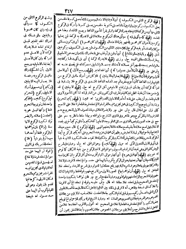 وَمِثْلُهُ الرُّكُوعُ الثَّانِي مِنْ الْكُسُوفِ كَمَا سَيَأْتِي فِي بَابِهِ وَإِنْ كَانَ مَحْسُوبًا وَبِالْيَقِينِ مَا لَوْ شَكَّ فِي إدْرَاكِ الْحَدِّ الْمُعْتَبَرِ قَبْلَ ارْتِفَاعِ إمَامِهِ فَلَا يُدْرِكُ الرَّكْعَةَ؛ لِأَنَّ الْأَصْلَ عَدَمُ إدْرَاكِهِ وَإِنْ كَانَ الْأَصْلُ أَيْضًا بَقَاءَ الْإِمَامِ فِيهِ وَرُجِّحَ الْأَوَّلُ بِأَنَّ الْحُكْمَ بِإِدْرَاكِ مَا قَبْلَ الرُّكُوعِ بِهِ رُخْصَةً فَلَا يُصَارُ إلَيْهِ إلَّا بِيَقِينٍ.
