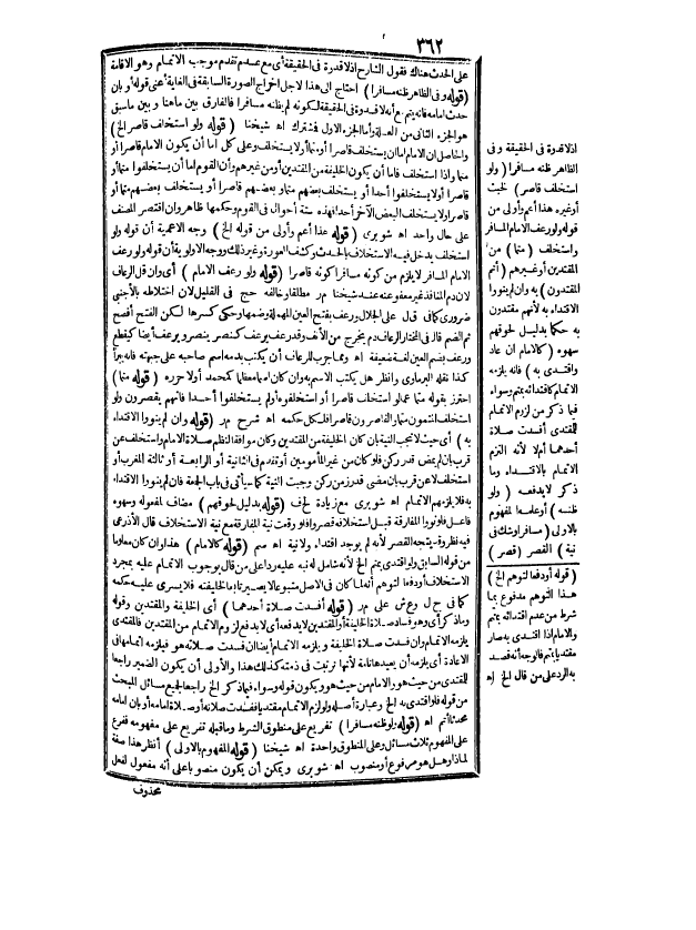ـــــــــــــــــــــــــــــQعَلَى الْحَدَثِ هُنَاكَ فَقَوْلُ الشَّارِحِ إذْ لَا قُدْوَةَ فِي الْحَقِيقَةِ أَيْ: مَعَ عَدَمِ تَقَدُّمِ مُوجِبِ الْإِتْمَامِ وَهُوَ الْإِقَامَةُ (قَوْلُهُ: وَفِي الظَّاهِرِ ظَنَّهُ مُسَافِرًا) احْتَاجَ إلَى هَذَا لِأَجْلِ إخْرَاجِ الصُّورَةِ السَّابِقَةِ فِي الْغَايَةِ أَعْنِي قَوْلَهُ أَوْ بَانَ حَدَثُ إمَامِهِ فَإِنَّهُ يُتِمُّ مَعَ أَنَّهُ لَا قُدْوَةَ فِي الْحَقِيقَةِ لِكَوْنِهِ لَمْ يَظُنَّهُ مُسَافِرًا فَالْفَارِقُ بَيْنَ مَا هُنَا وَبَيْنَ مَا سَبَقَ هُوَ الْجُزْءُ الثَّانِي مِنْ الْعِلَّةِ وَأَمَّا الْجُزْءُ الْأَوَّلُ فَمُشْتَرَكٌ اهـ شَيْخُنَا