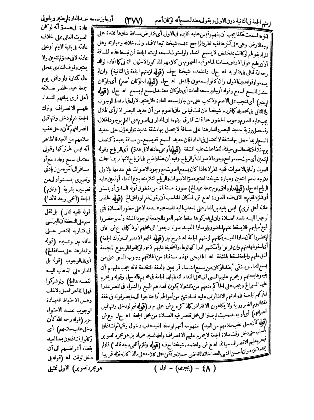 ـــــــــــــــــــــــــــــQآخِرِهَا لَسُمِعَتْ هَكَذَا يَجِبُ أَنْ يُفْهَمَ وَقِيسَ عَلَيْهِ نَظِيرُهُ فِي الْأُولَى أَيْ: فَتُفْرَضُ مَسَافَةُ عُلُوِّهَا مُمْتَدَّةً عَلَى وَجْهِ الْأَرْضِ وَهِيَ عَلَى آخِرِهَا فَفِيهِ نَظَرٌ، وَالرَّاجِحُ عِنْدَ شَيْخِنَا تَبَعًا لِإِفْتَاءِ وَالِدِهِ خِلَافُهُ وَعِبَارَتُهُ وَهَلْ الْمُرَادُ بِقَوْلِهِمْ: لَوْ كَانَتْ بِمُنْخَفِضٍ لَا يَسْمَعُ النِّدَاءَ وَلَوْ اسْتَوَتْ لَسَمِعَهُ لَزِمَتْهُ الْجُمُعَةُ أَنْ تَبْسُطَ هَذِهِ الْمَسَافَةُ، أَوْ أَنْ يَطْلُعَ فَوْقَ الْأَرْضِ مُسَامِتًا لِمَا هُوَ فِيهِ. الْمَفْهُومُ مِنْ كَلَامِهِمْ الْمَذْكُورِ الِاحْتِمَالُ الثَّانِي كَمَا أَفَادَهُ الْوَالِدُ - رَحِمَهُ اللَّهُ تَعَالَى - فِي فَتَاوِيهِ. . اهـ. ح ل وَاعْتَمَدَهُ شَيْخُنَا ح ف (قَوْلُهُ: لَزِمَتْهُمْ الْجُمُعَةُ فِي الثَّانِيَةِ) وَإِنْ لَمْ يَسْمَعُوا وَقَوْلُهُ: دُونَ الْأُولَى وَإِنْ كَانُوا يَسْمَعُونَ بِالْفِعْلِ. اهـ. ح ل (قَوْلُهُ: أَنَّهُ لَوْ كَانَ أَصَمَّ) أَيْ: وَلَوْ كَانَ مُعْتَدِلَ السَّمْعِ لَسَمِعَ، وَقَوْلُهُ: أَوْ جَاوَزَ سَمْعُهُ الْعَادَةَ أَيْ: وَلَوْ كَانَ مُعْتَدِلَ سَمْعٍ لَمْ يَسْمَعْ. اهـ. ح ل