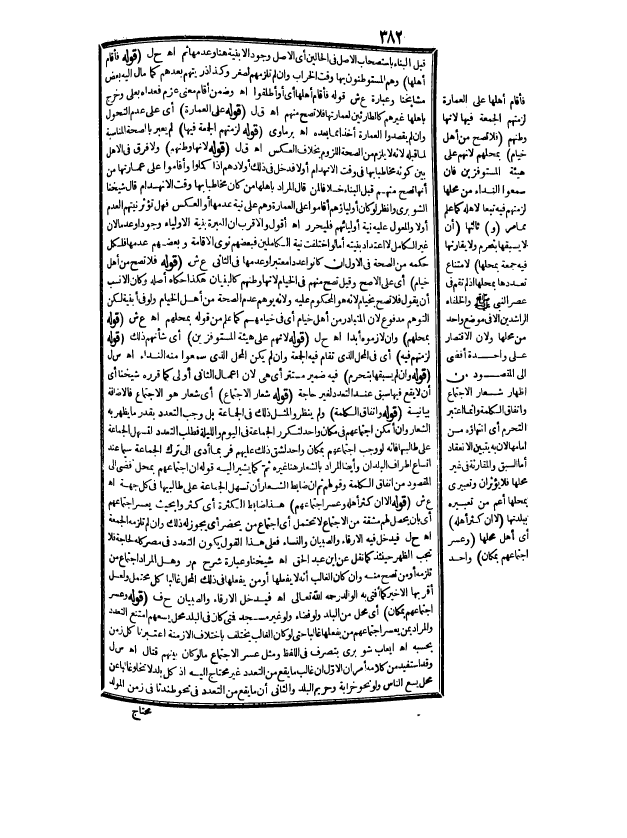 شَيْخُنَا وَعِبَارَةُ م ر وَهَلْ الْمُرَادُ اجْتِمَاعُ مَنْ تَلْزَمُهُ، أَوْ مَنْ تَصِحُّ مِنْهُ وَإِنْ كَانَ الْغَالِبُ أَنَّهُ لَا يَفْعَلُهَا، أَوْ مَنْ يَفْعَلُهَا فِي ذَلِكَ الْمَحَلِّ غَالِبًا؟ كُلٌّ مُحْتَمَلٌ وَلَعَلَّ أَقْرَبَهَا الْأَخِيرُ كَمَا أَفْتَى بِهِ الْوَالِدُ - رَحِمَهُ اللَّهُ تَعَالَى - اهـ فَيَدْخُلُ الْأَرِقَّاءُ وَالصِّبْيَانُ ح فِيهِ. (قَوْلُهُ: وَعَسُرَ اجْتِمَاعُهُمْ بِمَكَانٍ) أَيْ: مَحَلٍّ مِنْ الْبَلَدِ وَلَوْ فَضَاءً، وَلَوْ غَيْرَ مَسْجِدٍ فَمَتَى كَانَ فِي الْبَلَدِ مَحَلٌّ يَسَعُهُمْ امْتَنَعَ التَّعَدُّدُ، وَالْمُرَادُ بِمَنْ يَعْسُرُ اجْتِمَاعُهُمْ مَنْ يَفْعَلُهَا غَالِبًا حَتَّى لَوْ كَانَ الْغَالِبُ يَخْتَلِفُ بِاخْتِلَافِ الْأَزْمِنَةِ اعْتَبَرْنَا كُلَّ زَمَنٍ بِحَسَبِهِ. اهـ إيعَابٌ شَوْبَرِيٌّ بِتَصَرُّفٍ فِي اللَّفْظِ وَمِثْلُ عُسْرِ الِاجْتِمَاعِ مَا لَوْ كَانَ بَيْنَهُمْ قِتَالٌ. اهـ. س ل وَقَدْ اُسْتُفِيدَ مِنْ كَلَامِهِ أَمْرَانِ: الْأَوَّلُ: أَنَّ غَالِبَ مَا يَقَعُ مِنْ التَّعَدُّدِ غَيْرُ مُحْتَاجٍ إلَيْهِ إذْ كُلُّ بَلَدٍ لَا تَخْلُو غَالِبًا عَنْ مَحَلٍّ يَسَعُ النَّاسَ وَلَوْ نَحْوَ خَرَابَةٍ، وَحَرِيمِ الْبَلَدِ وَالثَّانِي: أَنَّ مَا يَقَعُ مِنْ التَّعَدُّدِ فِي نَحْوِ طَنْدَتَا فِي زَمَنِ الْمَوْلِدِ