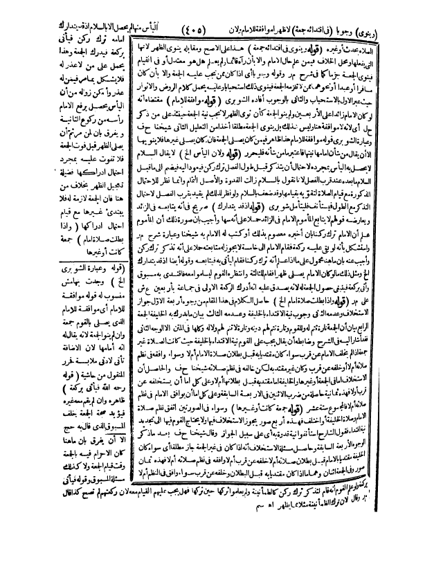 (قَوْلُهُ: مُوَافَقَةً لِلْإِمَامِ) مُقْتَضَاهُ أَنَّهُ لَوْ كَانَ الْإِمَامُ زَائِدًا عَلَى الْأَرْبَعِينَ وَلَمْ يَنْوِ الْجُمُعَةَ كَأَنْ نَوَى الظُّهْرَ لَا تَجِبُ نِيَّةُ الْجُمُعَةِ حِينَئِذٍ عَلَى مَنْ ذُكِرَ. ح ل أَيْ لِأَنَّهُ لَا مُوَافَقَةَ هُنَا وَلَيْسَ كَذَلِكَ بَلْ يَنْوِي الْجُمُعَةَ مُطْلَقًا أَخْذًا مِنْ التَّعْلِيلِ الثَّانِي شَيْخُنَا ح ف وَعِبَارَةُ الشَّوْبَرِيِّ قَوْلُهُ مُوَافَقَةً لِلْإِمَامِ هَذَا ظَاهِرٌ فِيمَنْ كَانَ يُصَلِّي الْجُمُعَةَ. فَإِنْ كَانَ يُصَلِّي غَيْرَهَا فَلَا يَنْوِيهَا إلَّا أَنْ يُقَالَ مِنْ شَأْنِ إمَامَهَا نِيَّتُهَا فَاعْتُبِرَ مَا مَنْ شَأْنُهُ فَلْيُحَرَّرْ. (قَوْلُهُ: وَلِأَنَّ الْيَأْسَ إلَخْ) لَا يُقَالُ السَّلَامُ لَا يَحْصُلُ بِهِ الْيَأْسُ بِمُجَرَّدِهِ لِاحْتِمَالِ أَنْ يَتَذَكَّرَ قَبْلَ طُولِ الْفَصْلِ تَرْكَ رُكْنٍ فَيَعُودَ إلَيْهِ فَيَضُمَّ إلَى مَا قَبْلَ السَّلَامِ مَا بَعْدَهُ عِنْدَ قُرْبِ الْفَصْلِ؛ لِأَنَّا نَقُولُ بِالسَّلَامِ زَالَتْ الْقُدْوَةُ وَالْأَصْلُ التَّمَامُ وَإِنَّمَا نُظِرَ لِلِاحْتِمَالِ الْمَذْكُورِ مَعَ قِيَامِ الصَّلَاةِ لِتَقَوِّيهِ بِقِيَامِهَا وَقَدْ ضَعُفَ بِالسَّلَامِ وَلَوْ نُظِرَ لِذَلِكَ لَمْ يُقَيَّدْ بِقُرْبِ الْفَصْلِ لِاحْتِمَالِ التَّذَكُّرِ مَعَ الطُّولِ فَيَسْتَأْنِفُ فَلْيُتَأَمَّلْ شَوْبَرِيُّ