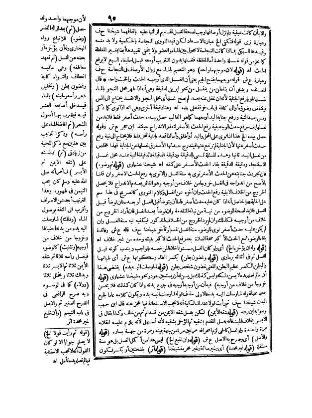 وَهُنَا دَقِيقَةٌ أُخْرَى وَهِيَ أَنَّهُ نَوَى كَمَا ذُكِرَ وَمَسَّ بَعْدَ النِّيَّةِ وَرَفْعِ جَنَابَةِ الْيَدِ أَوْ مَعَهُمَا كَمَا هُوَ الْغَالِبُ حَصَلَ بِيَدِهِ حَدَثٌ أَصْغَرُ فَقَطْ، فَلَا بُدَّ مِنْ غَسْلِهَا بَعْدَ رَفْعِ حَدَثِ الْوَجْهِ بِنِيَّةِ رَفْعِ الْحَدَثِ الْأَصْغَرِ لِتَعَذُّرِ الِانْدِرَاجِ حِينَئِذٍ ابْنُ حَجَرٍ ع ش وَقَوْلُهُ: حَصَلَ بِيَدِهِ إلَخْ، هَذَا إذَا نَوَى عَلَى الْمَحَلِّ وَالْيَدِ، أَوْ أَطْلَقَ وَأَمَّا إذَا قَصَدَ بِالنِّيَّةِ الْمَحَلَّ فَقَطْ، فَلَا يَحْتَاجُ إلَى نِيَّةِ رَفْعِ حَدَثٍ أَصْغَرَ عَنْهَا لِأَنَّ الْجَنَابَةَ لَمْ تَرْتَفِعْ عَنْهَا فَيَنْدَرِجُ حَدَثُهَا الْأَصْغَرُ فِي غَسْلِهَا عَنْ الْجَنَابَةِ فَهَذَا مُخَلِّصٌ مِنْ غَسْلِ الْيَدِ ثَانِيًا وَهَذِهِ الْمَسْأَلَةُ تُسَمَّى بِالدَّقِيقَةِ وَدَقِيقَةِ الدَّقِيقَةِ فَالدَّقِيقَةُ النِّيَّةُ عِنْدَ مَحَلِّ غَسْلِ الِاسْتِنْجَاءِ وَدَقِيقَةُ الدَّقِيقَةِ بَقَاءُ الْحَدَثِ الْأَصْغَرِ عَلَى كَفِّهِ اهـ.