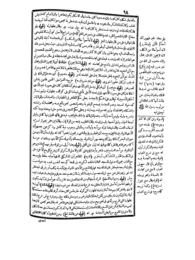 ـــــــــــــــــــــــــــــQمَائِعًا حَالَ إسْكَارِهِ كَانَ نَجَسًا وَإِنْ جَمَدَ، وَمَا كَانَ جَامِدًا حَالَ الْإِسْكَارِ يَكُونُ طَاهِرًا وَإِنْ انْمَاعَ كَالْحَشِيشِ الْمُذَابِ وَكَالْكِشْكِ الْمُسْكِرِ حَالَ جُمُودِهِ. وَالْحَاصِلُ أَنَّ مَا فِيهِ شِدَّةٌ مُطْرِبَةٌ نَجَسٌ سَوَاءٌ كَانَ مَائِعًا أَوْ جَامِدًا، فَالْكِشْكُ الْجَامِدُ لَوْ صَارَ فِيهِ شِدَّةٌ مُطْرِبَةٌ كَانَ نَجَسًا. اهـ. ح ل وَرَدَّهُ م ر وَقَالَ بِطَهَارَتِهِ