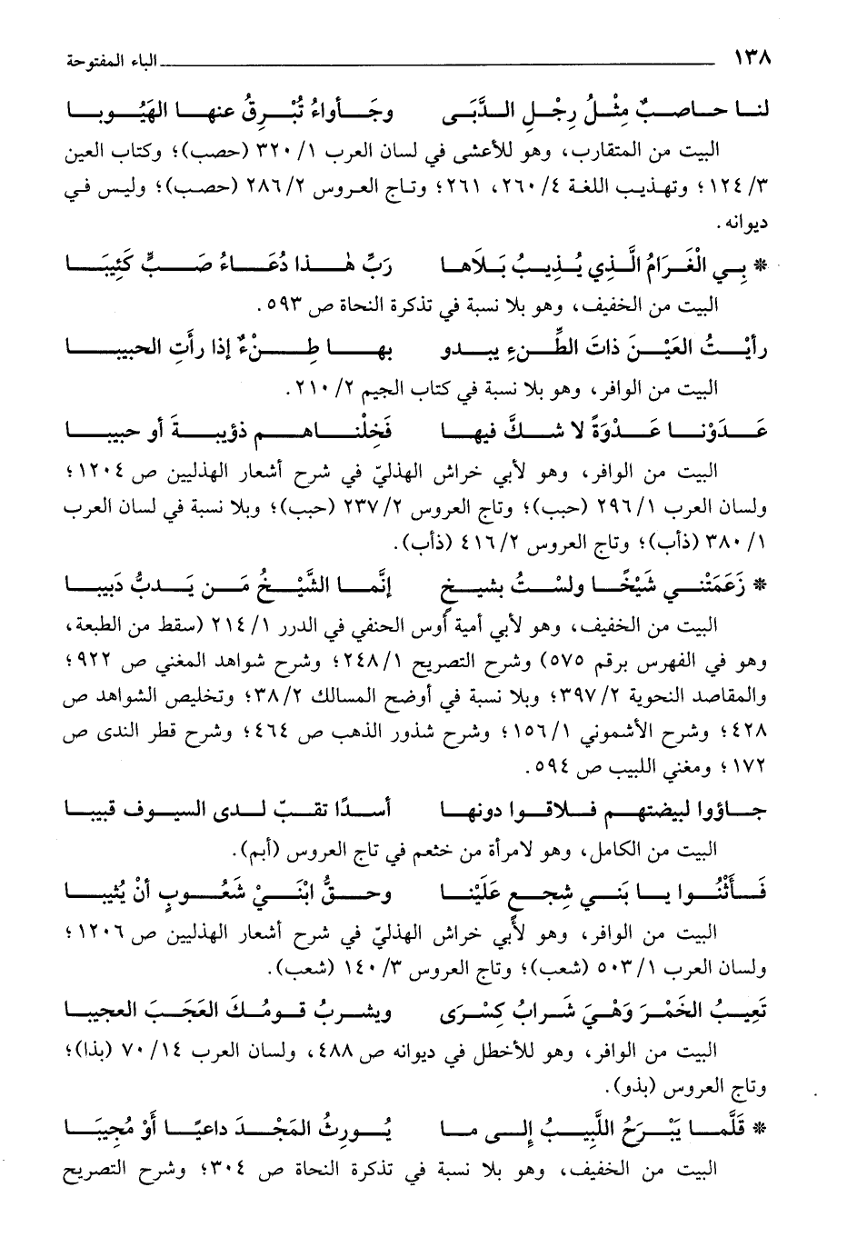 البيت من الوافر، وهو لأبي خراش الهذلي في شرح أشعار الهذليين ص 1204؛ ولسان العرب 1/ 296 (حبب)؛ وتاج العروس 2/ 237 (حبب)؛ وبلا نسبة في لسان العرب 1/ 380 (ذأب)؛ وتاج العروس 2/ 416 (ذأب).