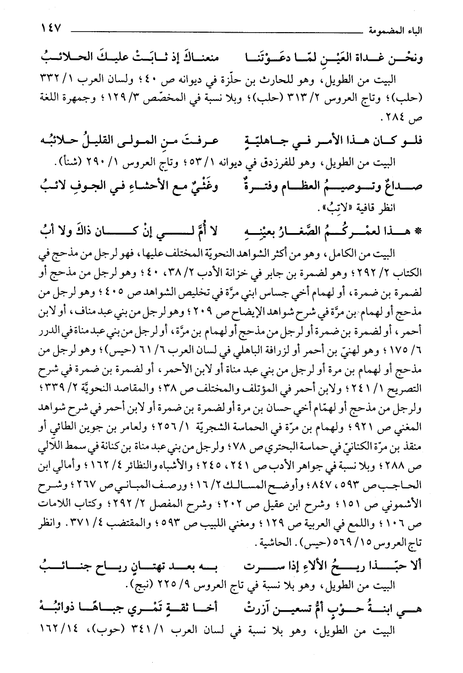 البيت من الكامل، وهو من أكثر الشواهد النحوية المختلف عليها، فهو لرجل من مذحج في الكتاب 2/ 292؛ وهو لضمرة بن جابر في خزانة الأدب 2/ 38، 40؛ وهو لرجل من مذحج أو لضمرة بن ضمرة، أو لهمام أخي جساس ابني مرة في تخليص الشواهد ص 405؛ وهو لرجل من مذحج أو لهما بن مرة في شرح شواهد الإضاح ص 209؛ وهو لرجل من بني عبد مناف، أو لابن أحمر، أو لضمرة بن ضمرة أو لرجل من مذحج أو لهمام بن مرة، أو لرجل من بني عبد مناة في الدرر 6/ 175؛ وهو لهني بن أحمر أو لزرافة الباهلي في لسان العرب 6/ 61 (حيس)؛ وهو لرجل من مذحج أو لهمام بن مرة أو لرجل من بني عبد مناة أو لابن الأحمر، أو لضمرة بن ضمرة في شرح التصريح 1/ 241؛ ولابن أحمر في المؤتلف والمختلف ص 38؛ والمقاصد النحوية 2/ 339؛ ولرجل من مذحج أو لهمام أخي حسان بن مرة أو لضمرة بن ضمرة أو لابن أحمر في شرح شواهد المغني ص 921؛ ولهمام بن مرة في الحماسة الشجرية 1/ 256؛ ولعامر بن جوين الطائي أو منقذ بن مرة الكناني في حماسة البحتري ص 78؛ ولرجل من بني عبد مناة بن كنانة في سمط اللآلي ص 288؛ وبلا نسبة في جواهر الأدب ص 241، 245؛ والأشباه والنظائر 4/ 162؛ وأمالي ابن الحاجب ص 593، 847؛ وأوضح المسالك 2/ 16؛ ورصف المباني ص 267؛ وشرح الأشموني ص 151؛ وشرح ابن عقيل ص 202؛ وشرح المفصل 2/ 292؛ وكتاب اللامات ص 106؛ واللمع في العربية ص 129؛ ومغني اللبيب ص 593؛ والمقتضب 4/ 371. وأنظر تاج العروس 15/ 569 (حيس). الحاشية.