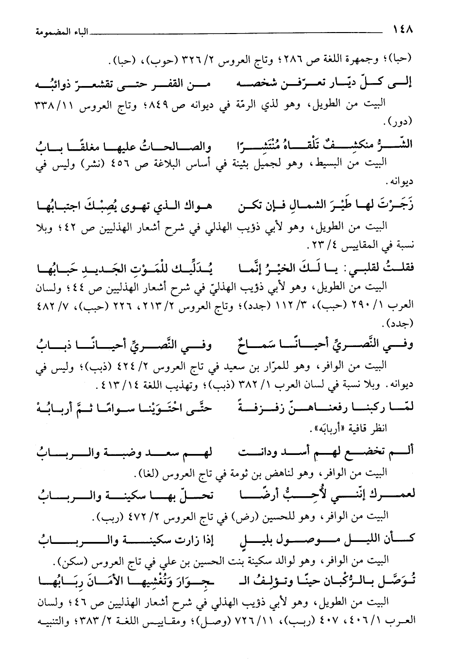 البيت من الطويل، وهو لأبي ذؤيب الهذلي في شرح أشعار الهذليين ص 46؛ ولسان العرب 1/ 406، 407 (ربب)، 11/ 726 (وصل)؛ ومقاييس اللغة 2/ 383؛ والتنبيه