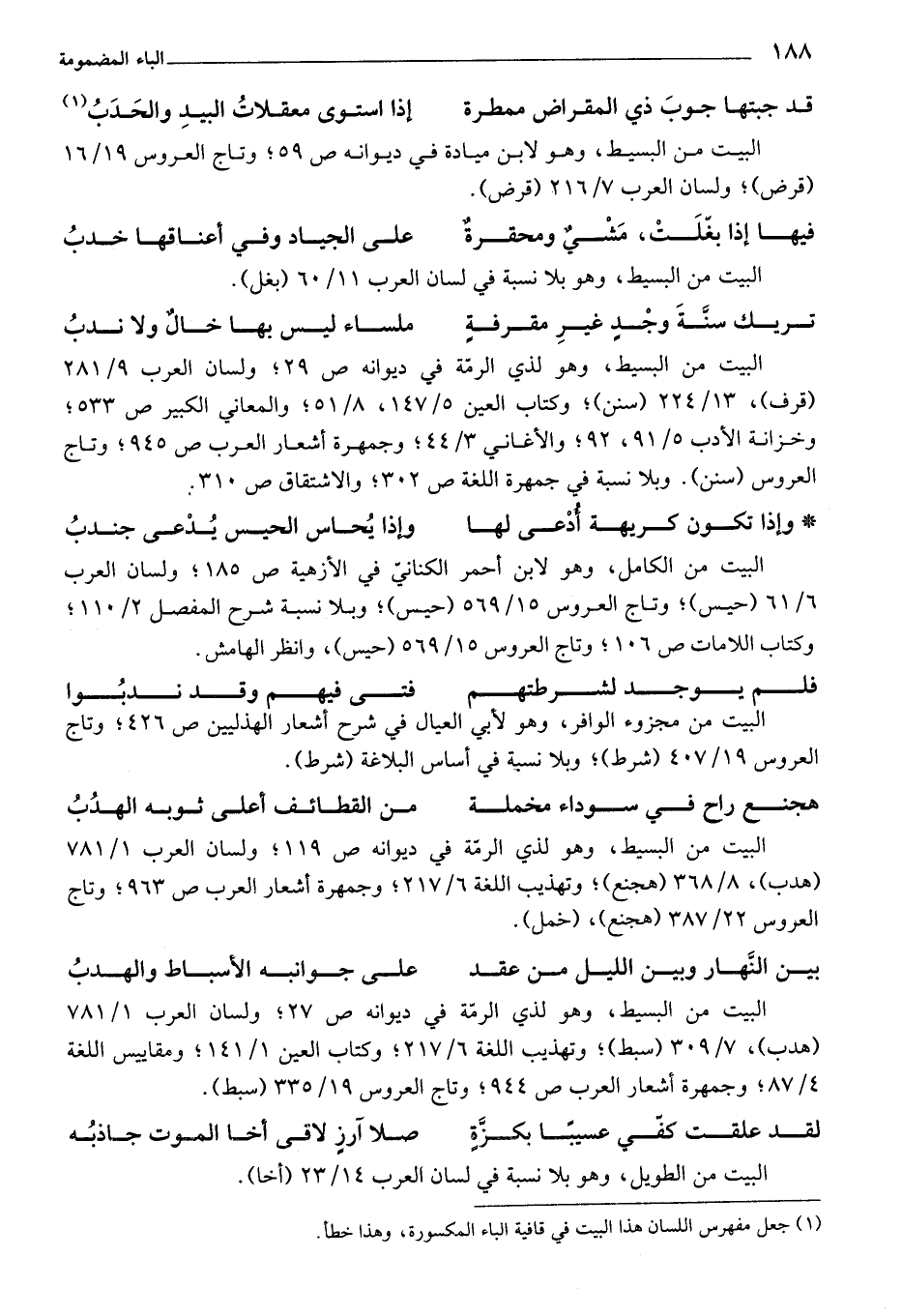 (¬1) جعل مفهرس اللسان هذا البيت في قافية الباء المكسورة، وهذا خطأ.