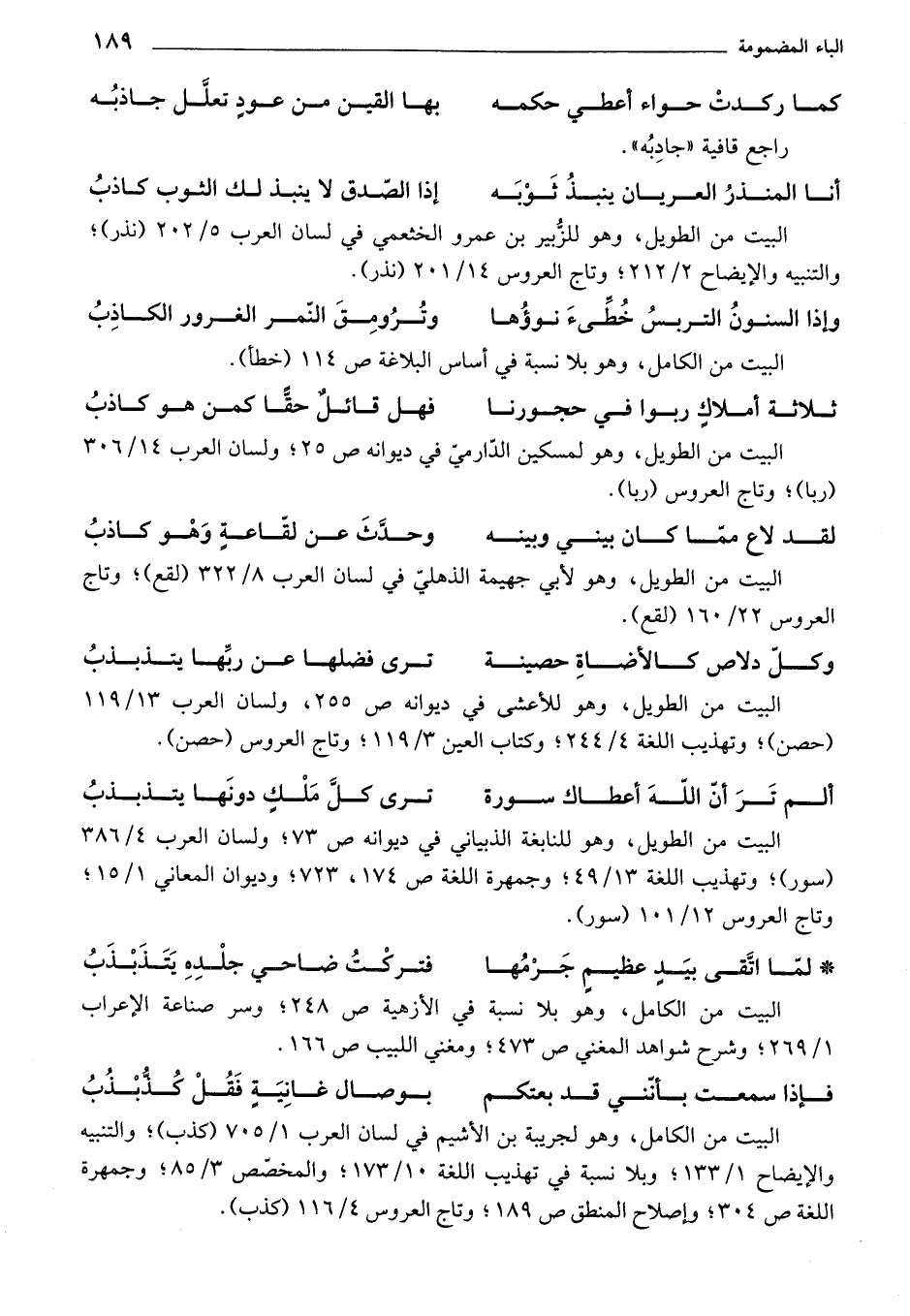 البيت من الكامل، وهو لجريبة بن الأشيم في لسان العرب 1/ 705 (كذب)؛ والتنبيه والإيضاح 1/ 133؛ وبلا نسبة في تهذيب اللغة 10/ 173؛ والمخصص 3/ 85؛ وجمهرة اللغة ص 304؛ وإصلاح المنطق ص 189؛ وتاج العروس 4/ 116 (كذب).