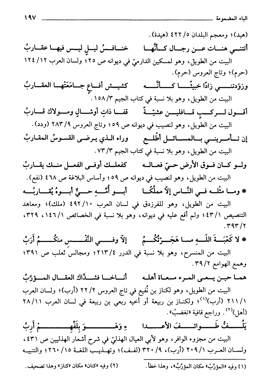 البيت من الطويل، وهو لكناز بن نفيع في تاج العروس 2/ 22 (أرب)؛ ولسان العرب 1/ 211 (أرب) (¬1)؛ ولكناز بن ربيعة أو أخيه ربعي بن ربيعة في لسان العرب 11/ 28 (أهل) (¬2). وراجع قافية "تغضب".