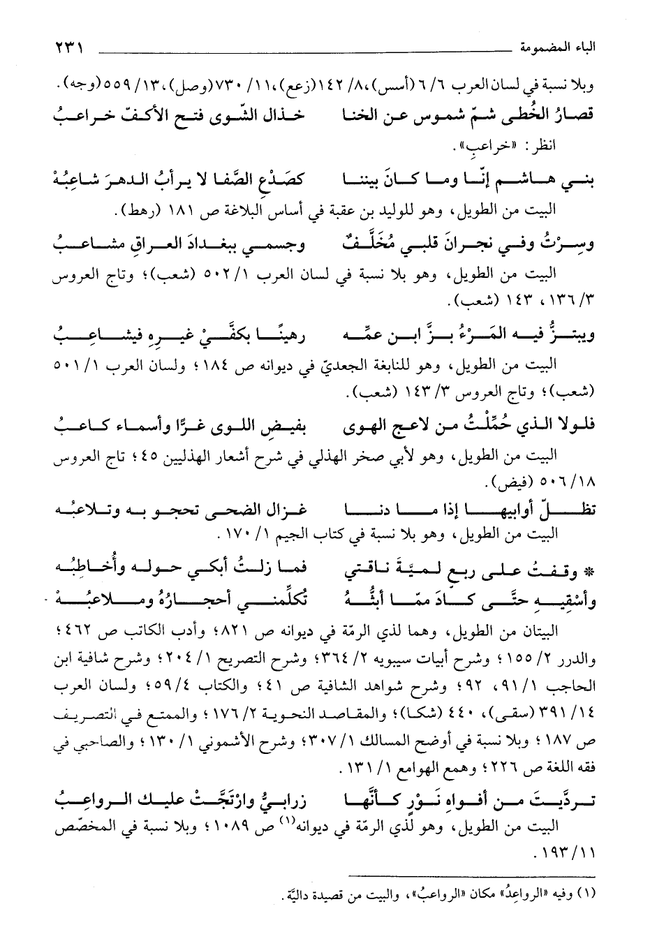 (¬1) وفيه "الرواعد" مكان الرواعب"، والبيت من قصيدة دالية.