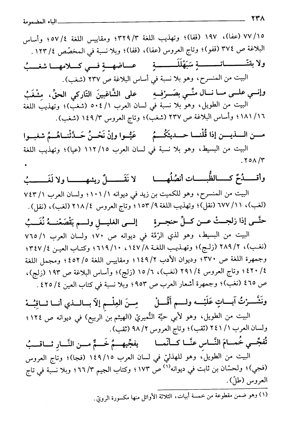 (¬1) وهو ضمن مقطوعة من خمسة أبيات، الثلاثة الأوائل منها مكسورة الرويّ.