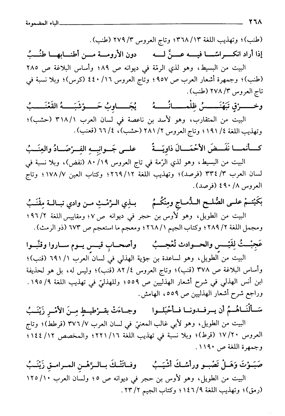 (طنب)؛ وتهذيب اللغة 13/ 368؛ وتاج العروس 3/ 279 (طنب).
