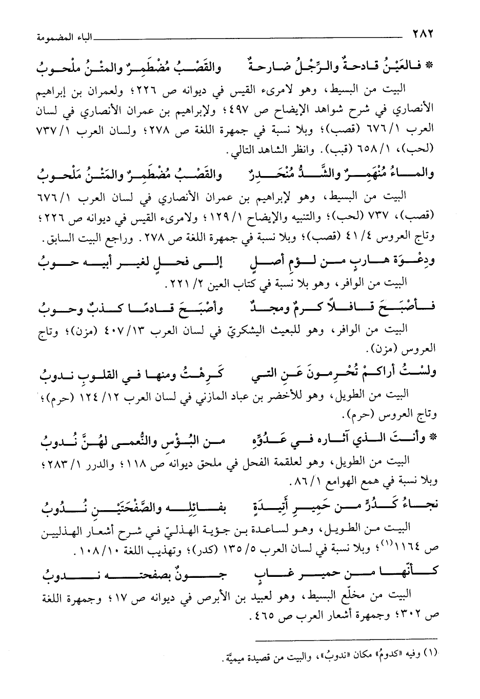 (¬1) وفيه "كدوم" مكان "ندوب"، والبيت من قصيدة ميمية.