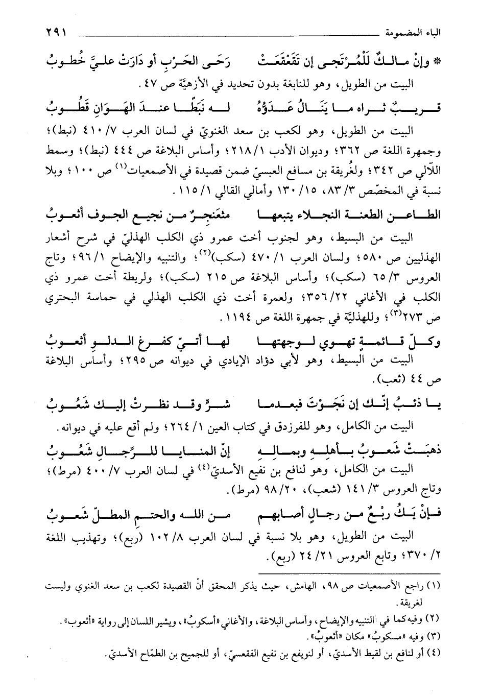 (¬1) راجع الأصمعيات ص 98، الهامش، حيث يذكر المحقق أن القصيدة لكعب بن سعد الغنوي وليست لغريقة.