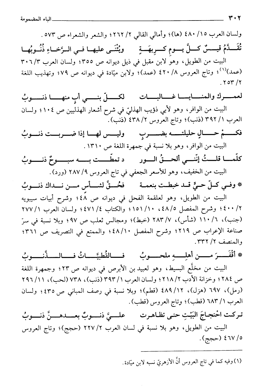 البيت من الوافر، وهو لأبي ذؤيب الذهلي في شرح أشعار الهذليين ص 104؛ ولسان العرب 1/ 392 (ذنب)؛ وتاج العروس 2/ 438 (ذنب).