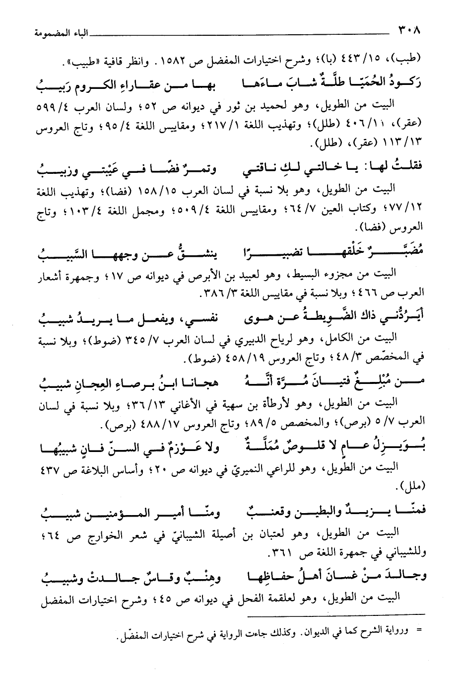 (طبب)، 15/ 443 (با)؛ وشرح اختيارات المفضل ص 1582. وانظر قافية "طبيب".