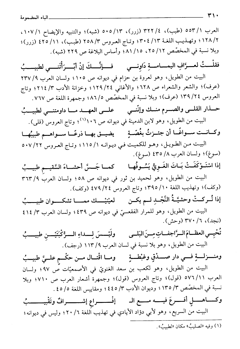 العرب 1/ 553 (طبب)، 4/ 322 (زرر)، 13/ 505 (شبه)؛ والتنبيه والإيضاح 1/ 107، 2/ 128؛ وتهذيب اللغة 13/ 304؛ وتاج العروس 3/ 258 (طبب)، 11/ 425 (زرر)؛ وبلا نسبة في المخصص 12/ 25، 15/ 81؛ وأساس البلاغة ص 229 (شبه).