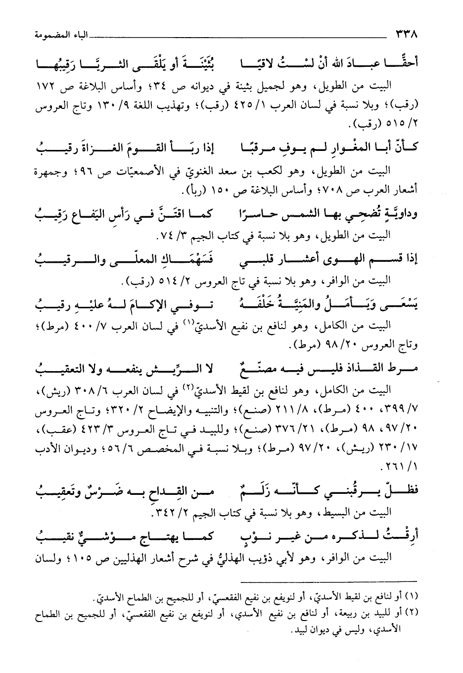 (¬2) أو للبيد بن ربيعة، أو لنافع بن نفيع الأسدي، أو لنويفع بن نفيع الفقعسي، أو للجميع بن الطماح الأسدي، وليس في ديوان لبيد.
