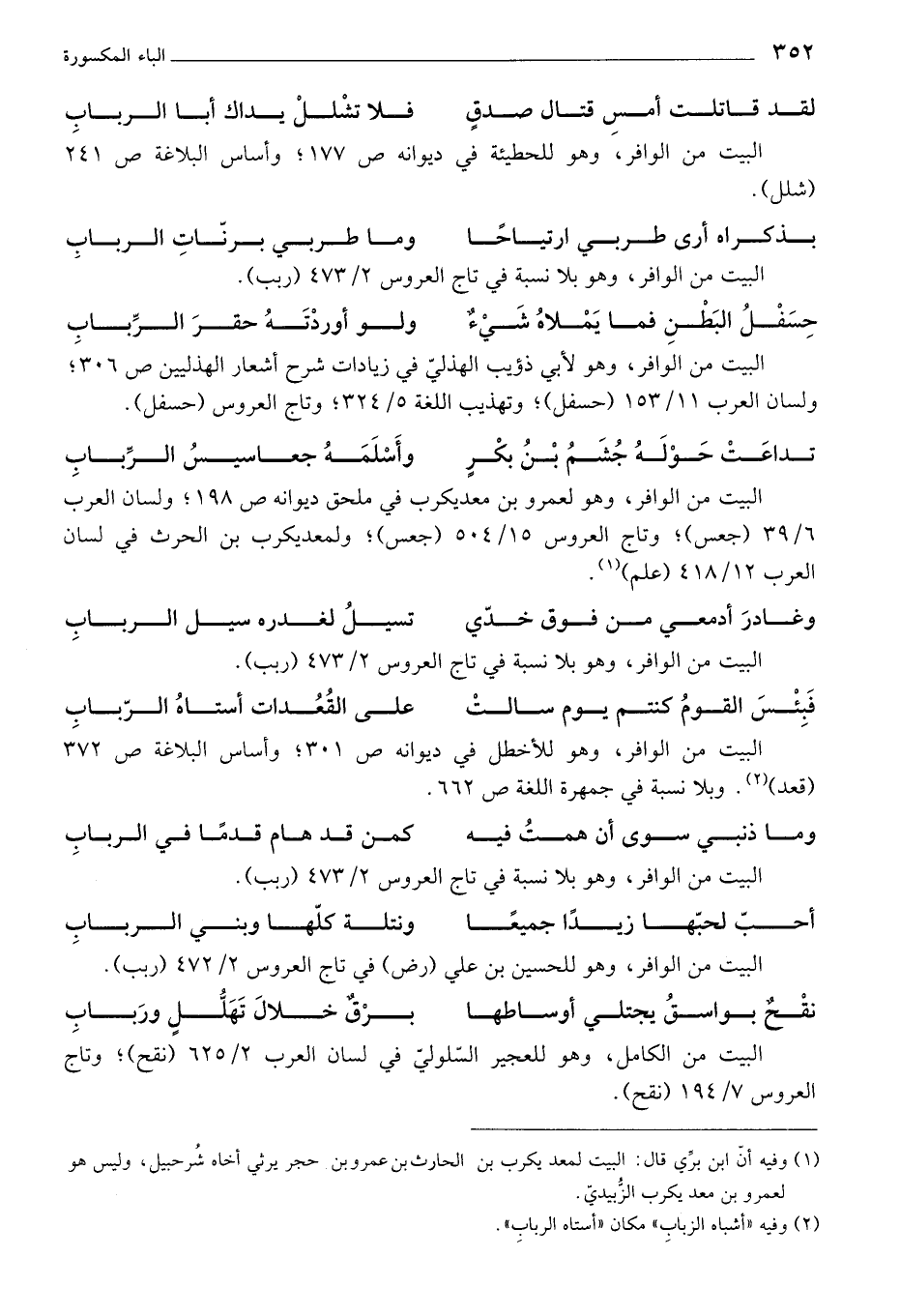 البيت من الوافر، وهو بلا نسبة في تاج العروس 2/ 473 (ربب).