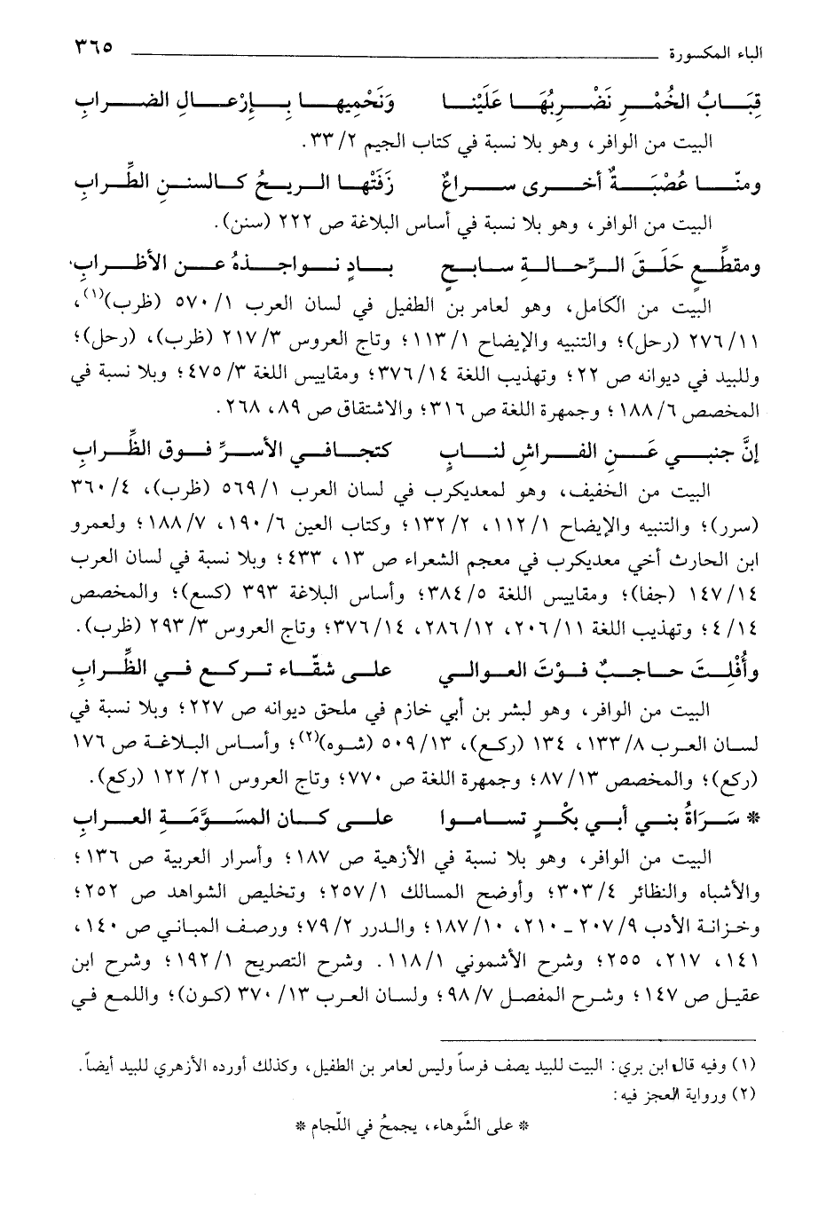 (¬1) وفيه قال ابن بري: البيت للبيد يصف فرسًا وليس لعامر بن الطفيل، وكذلك أورده الأزهري للبيد أيضًا.