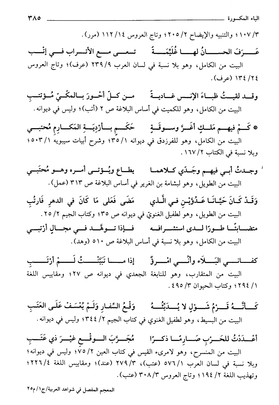 كتاب المعجم المفصل في شواهد العربية (اسم الجزء: 1)