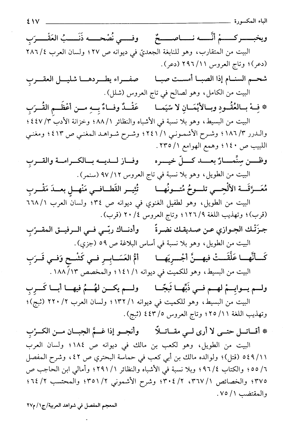 كتاب المعجم المفصل في شواهد العربية (اسم الجزء: 1)