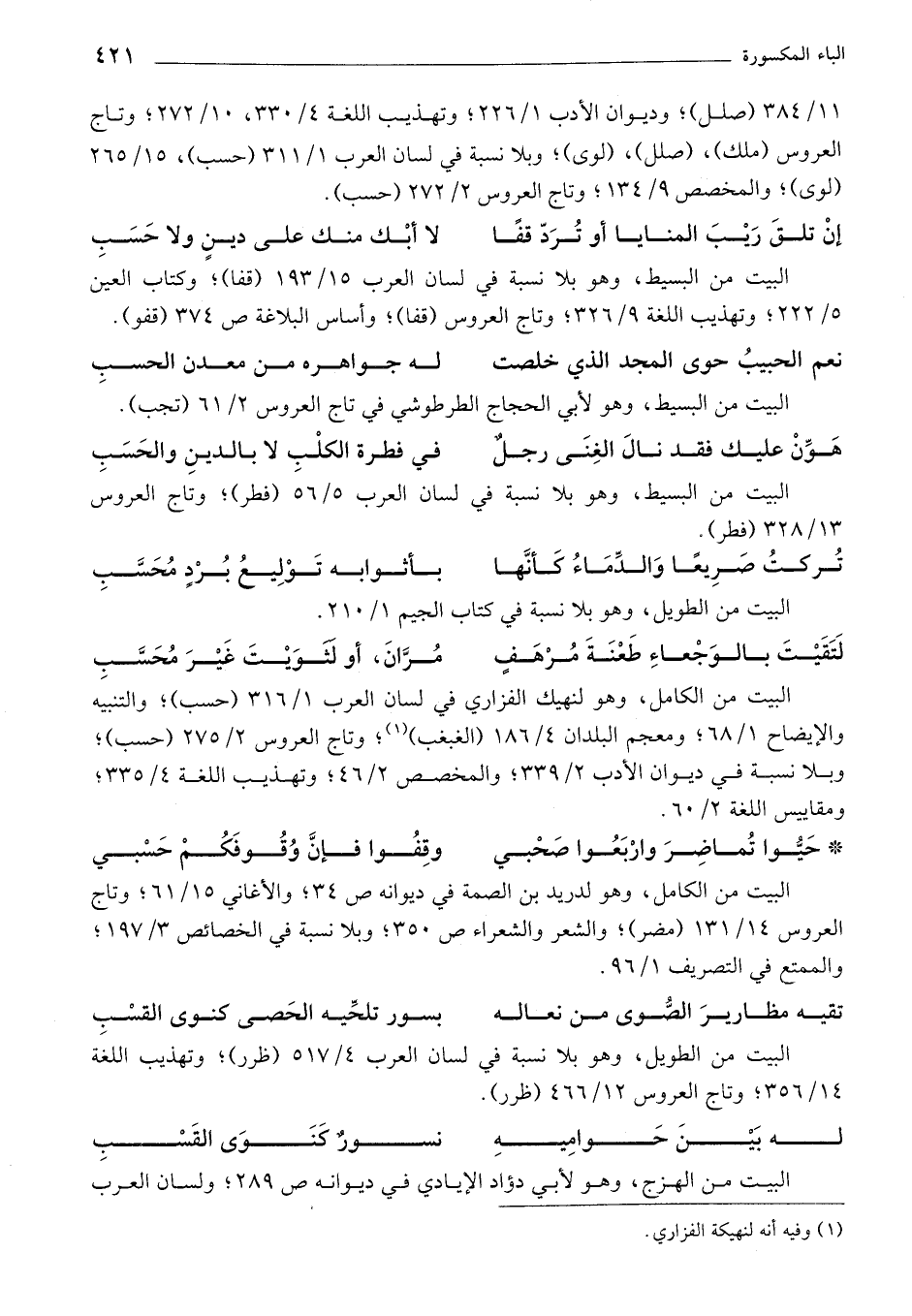 البيت من الكامل، وهو لنهيك الفزاري في لسان العرب 1/ 316 (حسب)؛ والتنبيه والإيضاح 1/ 68؛ ومعجم البلدان 4/ 186 (الغبغب) (¬1)؛ وتاج العروس 2/ 275 (حسب)؛ وبلا نسبة في ديوان الأدب 2/ 339؛ والمخصص 2/ 46؛ وتهذيب اللغة 4/ 335؛ ومقاييس اللغة 2/ 60.