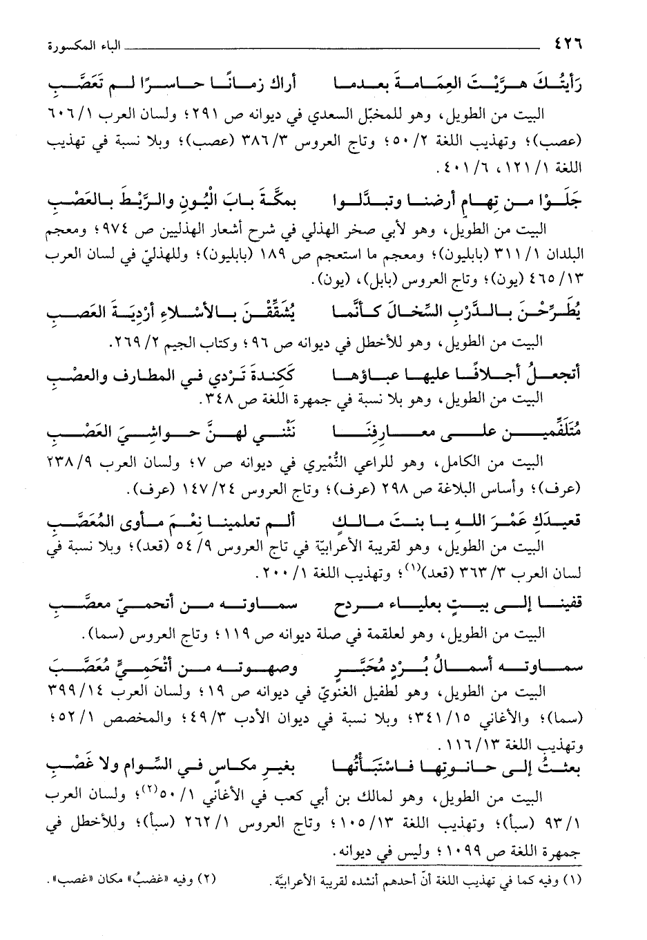 البيت من الطويل، وهو للمخبل السعدي في ديوانه ص 2941؛ ولسان العرب 1/ 606 (عصب)؛ وتهذيب اللغة 2/ 50؛ وتاج العروس 3/ 386 (عصب)؛ وبلا نسبة في تهذيب اللغة 1/ 121، 6/ 401.