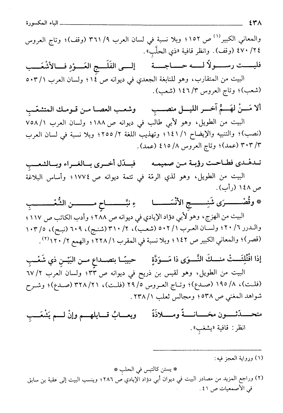 والمعاني الكبير (¬1) ص 152؛ وبلا نسبة في لسان العرب 9/ 361 (وقف)؛ وتاج العروس 24/ 470 (وقف). وانظر قافية "ذي الحلب".