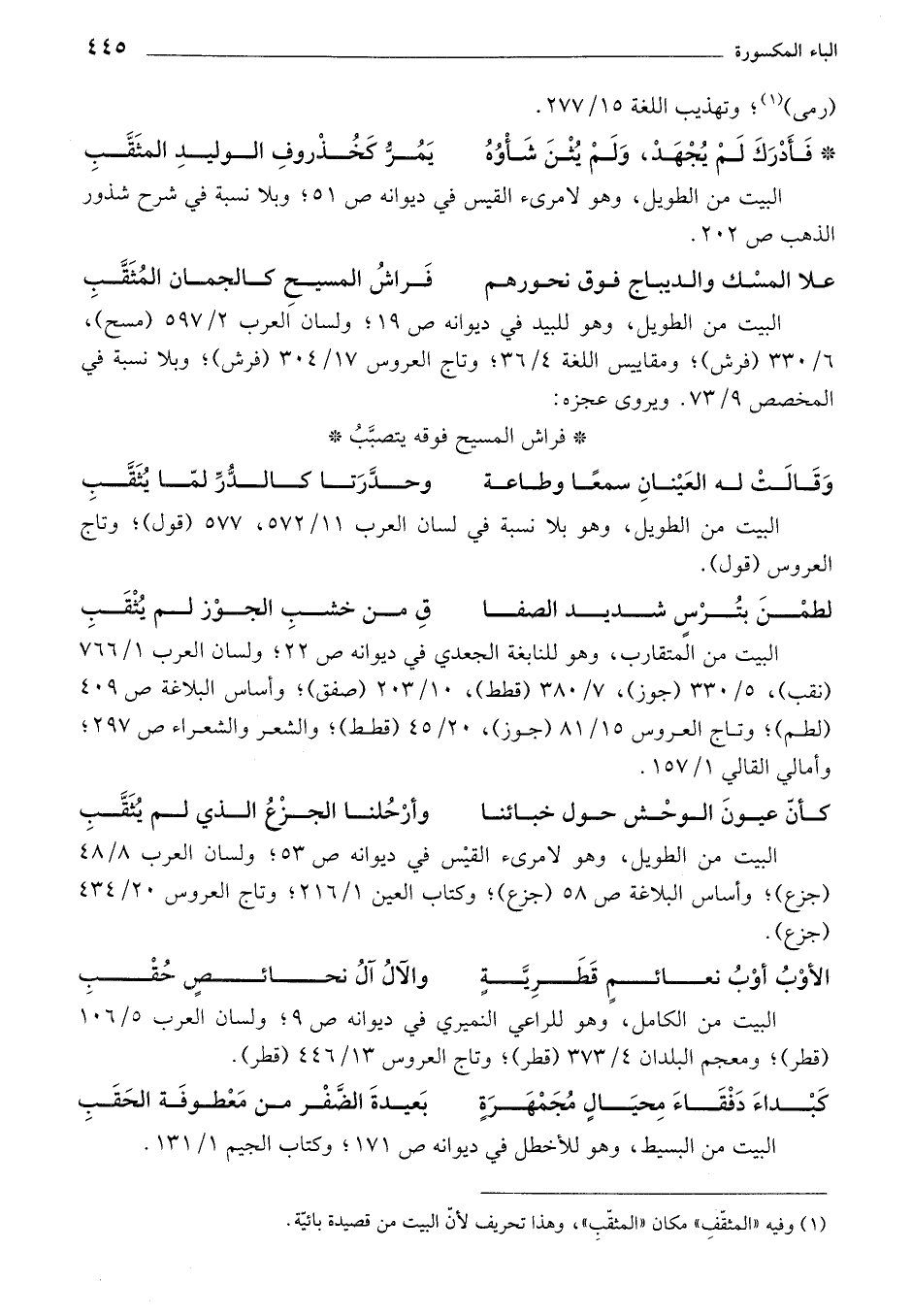 (¬1) وفيه "المثقف" مكان "المثقب"، وهذا تحريف لأن البيت من قصيدة بائية.