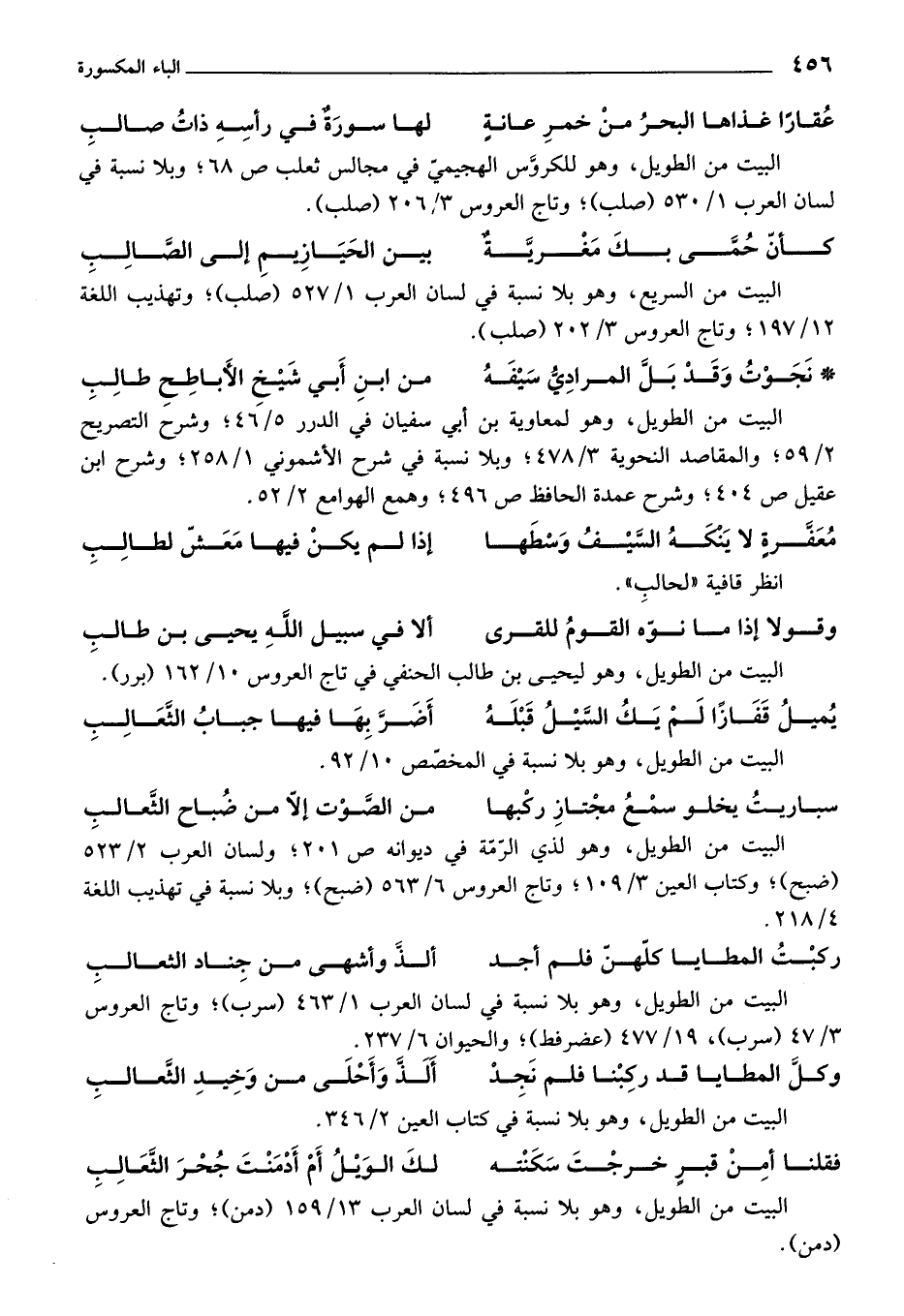 البيت من السريع، ب 12/ 527 (صلب)؛ وتهذيب اللغة 12/ 197؛ وتاج العروس 3/ 202 (صلب).