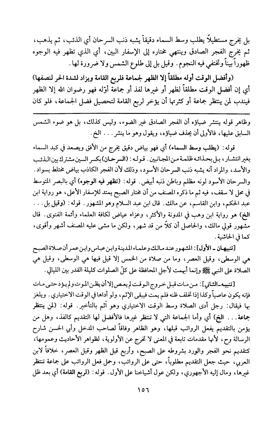 وظاهر قوله : 16 ( ينتشر ضياؤه ) : أن الفجر الصادق غير الضوء وليس كذلك ، بل هو ضوء الشمس السابق عليها فالأولى أن يحذف ( ضياؤه ) ويقول : وهو ما ينتشر حتى إلخ .