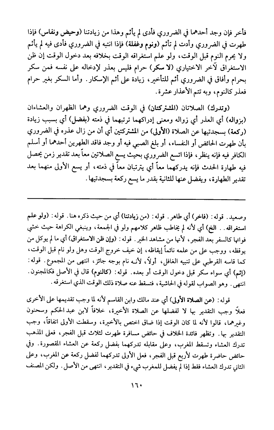 قوله : 16 ( عن الصلاة الأولى ) : أي عند مالك و ابن القاسم ، لأنه وجب تقديمها على الأخرى فعلاً وجب التقدير بها ، لا لفضلها عن الصلاة الأخيرة خلافاً لابن عبد الحكم و سحنون وغيرهما ، قالوا : لأنه لما كان الوقت إذا ضاق اختص بالأخيرة وسقطت الأولى اتفاقاً وجب التقدير بها . وتظهر فائدة الخلاف في حائض مسافرة طهرت لثلاث قبل الفجر فعلى المذهب تدرك العشاء وتسقط المغرب ، وعلى مقابله تدركهما بفضل ركعة عن العشاء المقصورة . وفي حائض حاضرة طهرت لأربع قبل الفجر ؛ فعلى الأولى تدركهما لفضل ركعة عن المغرب ، وعلى الثاني : تدرك العشاء فقط إذ لم يفضل للمغرب شيء في التقدير . ( انتهى من الأصل ) . ولكن المصنف
