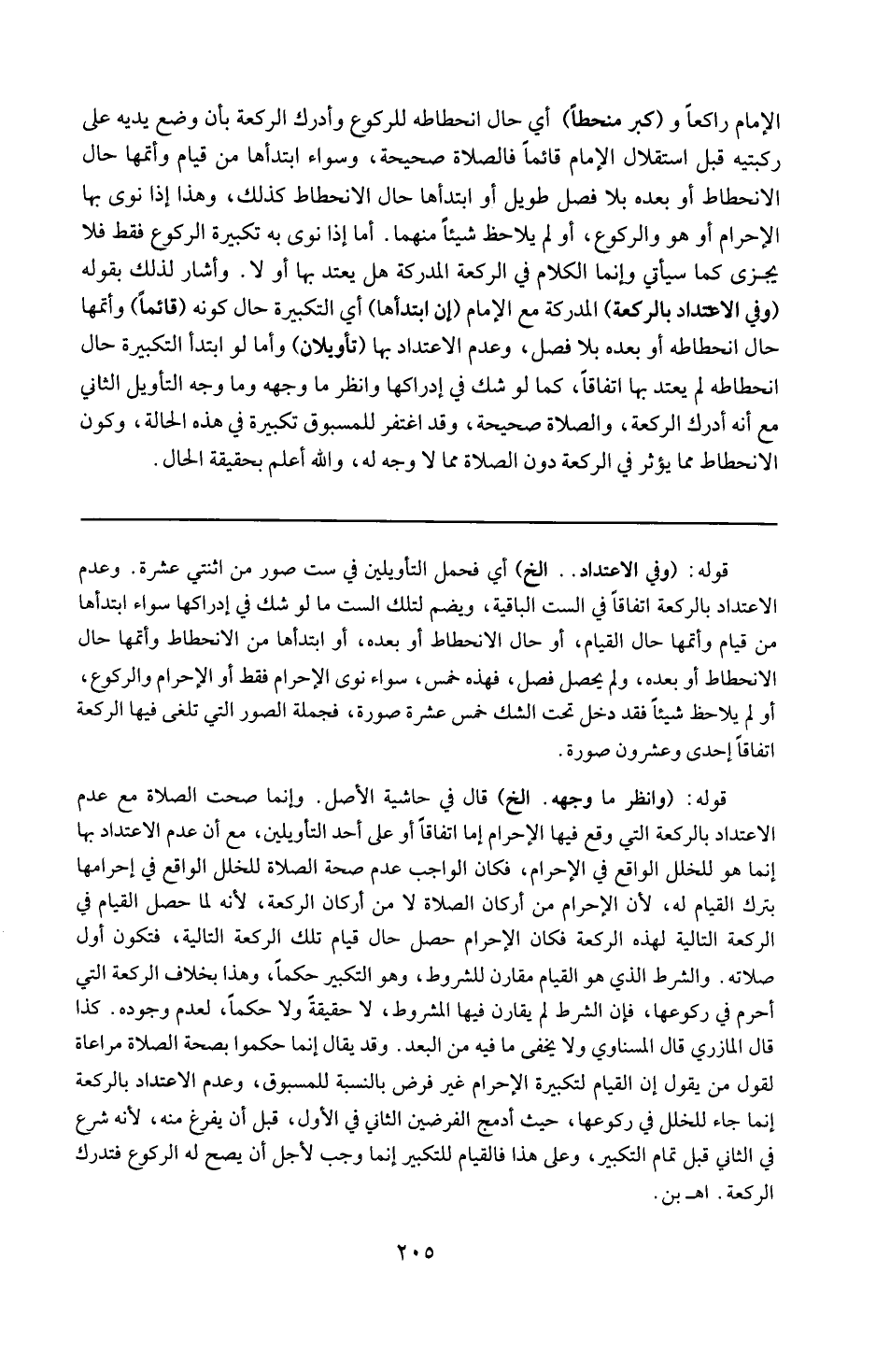 قوله : ( وانظر ما وجهه ) إلخ : قال في حاشية الإصل : وإنما صحت الصلاة مع عدم الاعتداد بالركعة التي وقع فيها الإحرام ، إما اتفاقاً أو على أحد التأويلين . مع أن عدم الاعتداد بها إنما هو للخلل الواقع في الإحرام . فكان الواجب عدم صحة الصلاة للخلل الواقع في إحرامها بترك القبام له ، لأن الإحرام من أركان الصلاة لا من أركان الركعة ، لأنه لما حصل القيام في الركعة التالية لهذه الركعة فكأن الإحرام حصل حال قيام تلك الركعة التالية فتكون أول صلاته ، والشرط الذي هو القيام مقارن للمشروط وهو التكبير حكماً . وهذا بخلاف الركعة التي أحرم في ركوعها ، فإن الشرط لم يقارن فيها المشروط لا حقيقة ولا حكماً لعدم وجوده كذا قال المازري . قال المسناوي : ولا يخفى ما فيه من البعد وقد يقال إنما حكموا بصحة الصلاة مراعاة لقول من يقول : إن القيام لتكبيرة الإحرام غير فرض بالنسبة للمسبوق وعدم الاعتداد بالركعة إنما جاء للخلل في ركوعها حيث أدمج الفرضين الثاني في الأول قبل أن يفرغ منه ، لأنه شرع في الثاني قبل تمام التكبير ، وعلى هذا فالقيام للتكبير إنما وجب لأجل أن يصح له الركوع فتدرك الركعة . 19 ( اه . بن ) .
