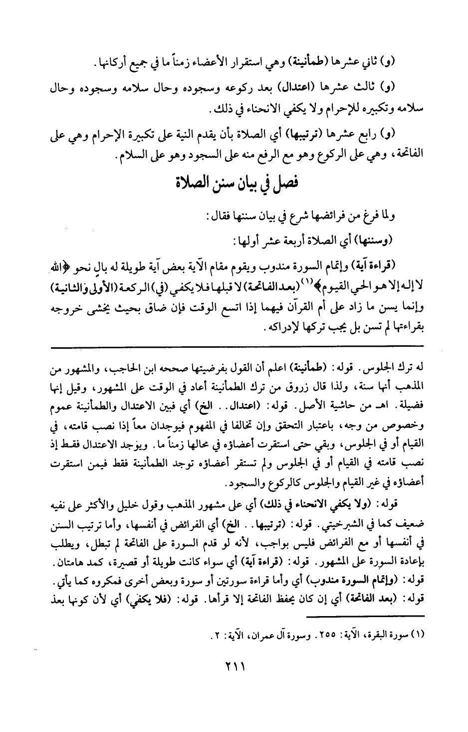 قوله : ( طمأنينة ) : اعلم أن القول بفرضيتها صححه ابن الحاجب ، والمشهور من المذهب أنها سنة ولذا قال زروق : من ترك الطمأنينة أعاد في الوقت على المشهور ، وقيل إنها فضيلة 16 ( اه من حاشية الأصل )