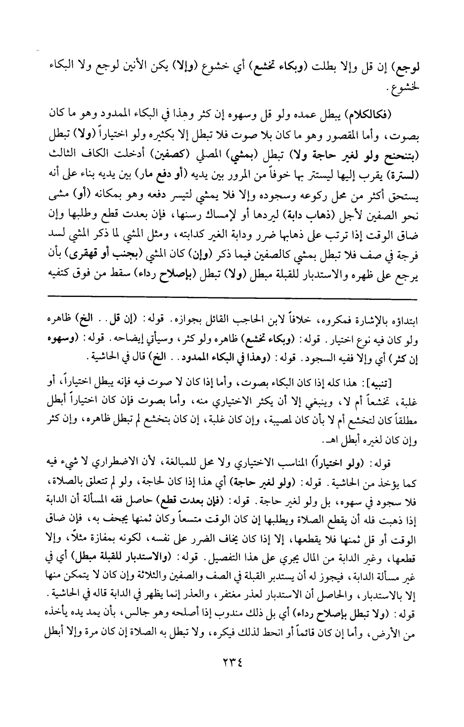 وأما بصوت فإن كان اختيارا أبطل مطلقا كان لتخشع أم لا بأن كان لمصيبة /