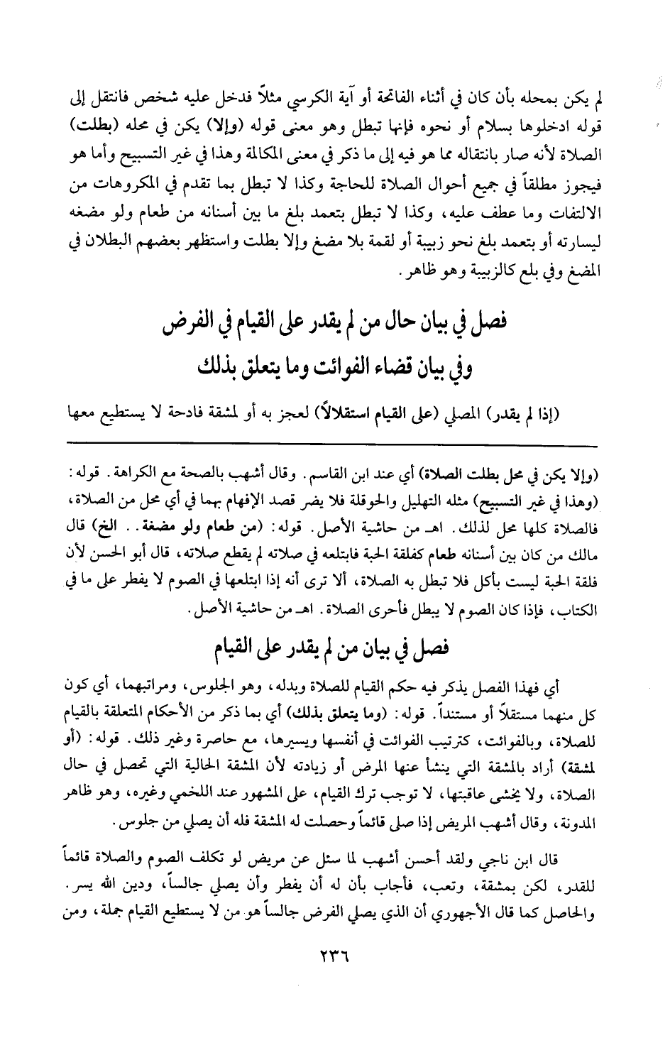إذا صلى قائما وحصلت له المشقة فله أن يصلي من جلوس . قال ابن ناجي ولقد