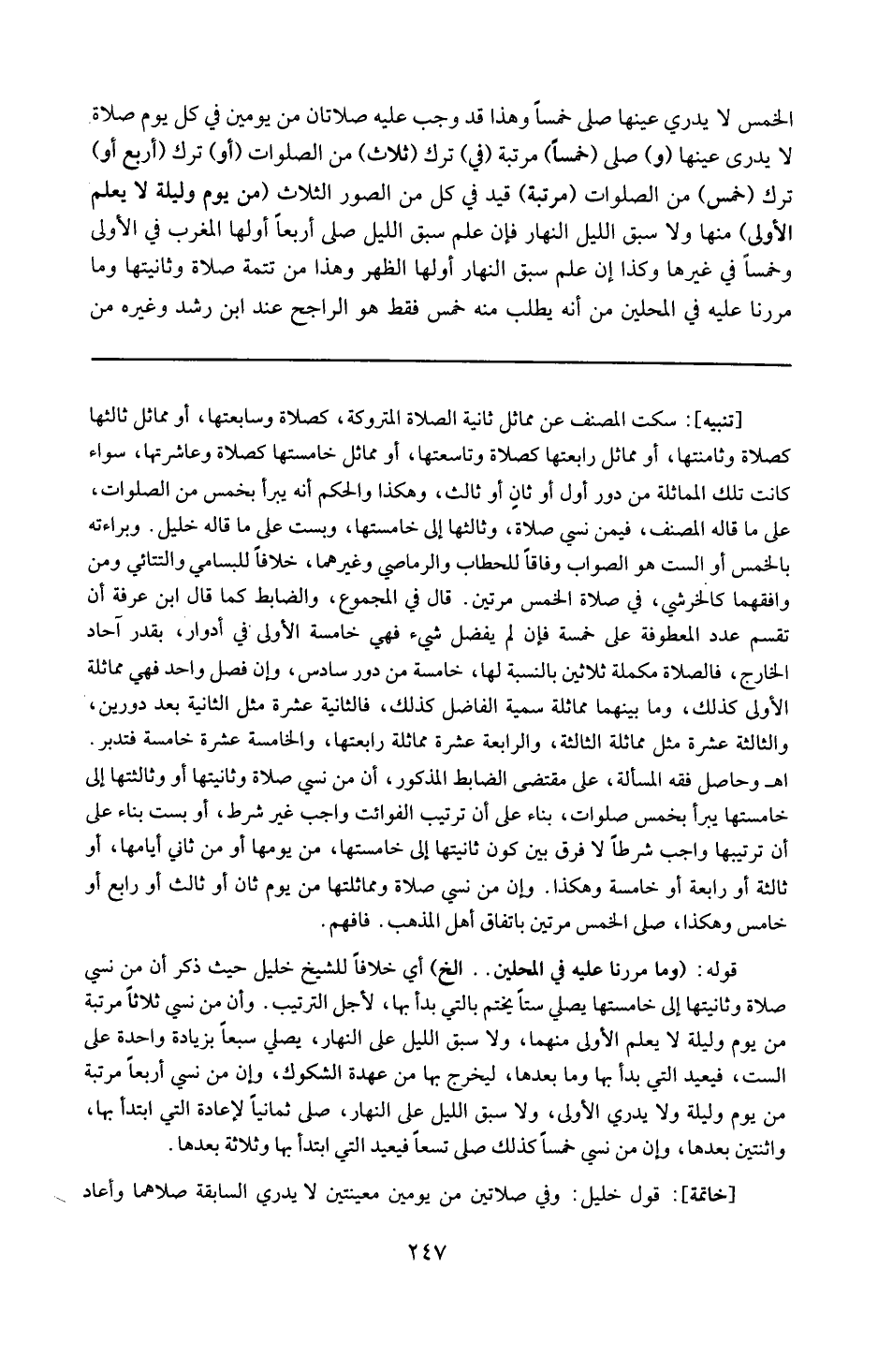 خاتمة : قول خليل وفي صلاتين من يومين معينتين لا يدري السابقة صلاهما