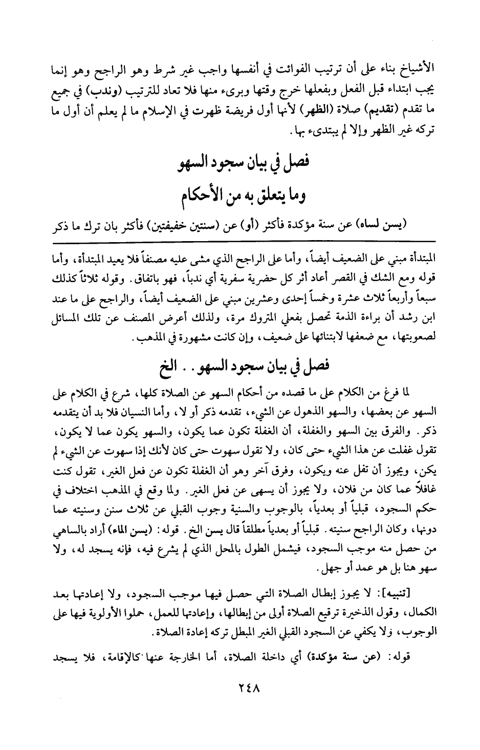 والسنية ، ووجوب القبلي عن ثلاث سنن وسنيته عما دونها ، وكان الراجح سنيته قبليا
