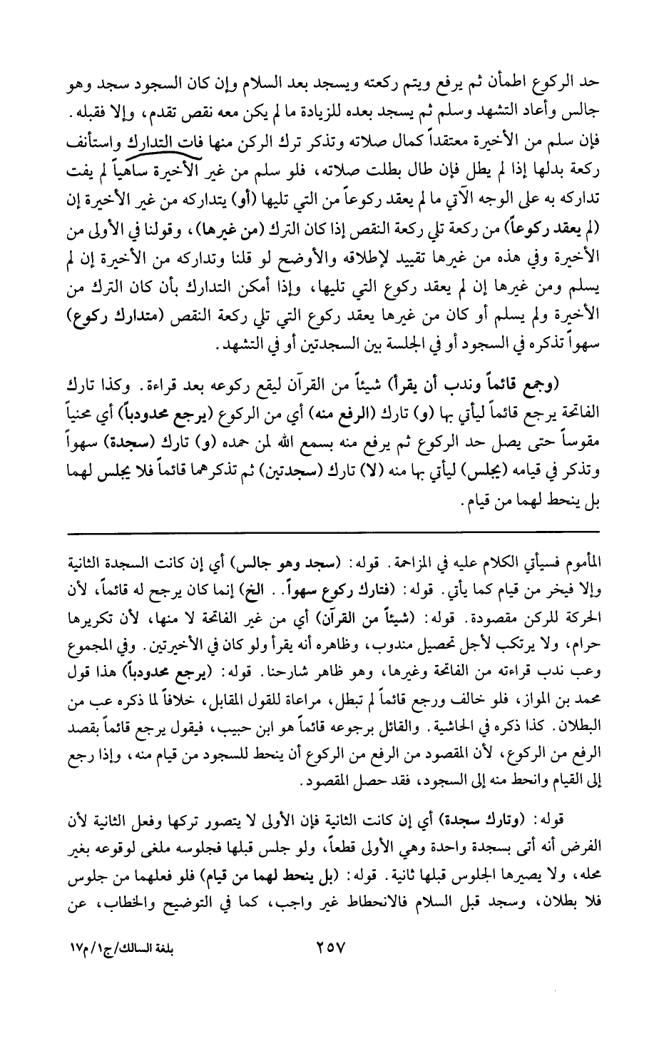 الحاشية . والقائل برجوعه قائما هو ابن حبيب ، فيقول : يرجع قائما بقصد الرفع