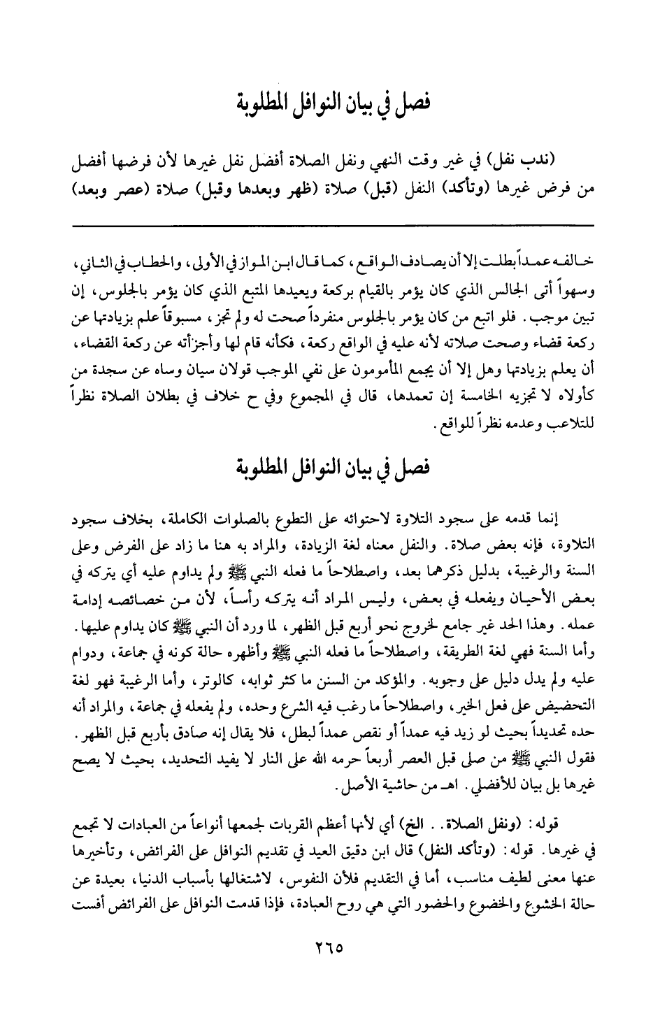 والنفل معناه لغة : الزيادة . والمراد به هنا ما زاد على الفرض وعلى السنة والرغيبة ، بدليل ذكرهما بعد ، واصطلاحاً : ما فعله النبي ولم يداوم عليه أي يتركه في بعض الأحيان ، ويفعله في بعض . وليس المراد أنه يتركه رأساً لأن من خصائصه إدامة عمله . وهذا الحد غير جامع ؛ لخروج نحو أربع قبل الظهر ، لما ورد أن النبي كان يداوم عليها .