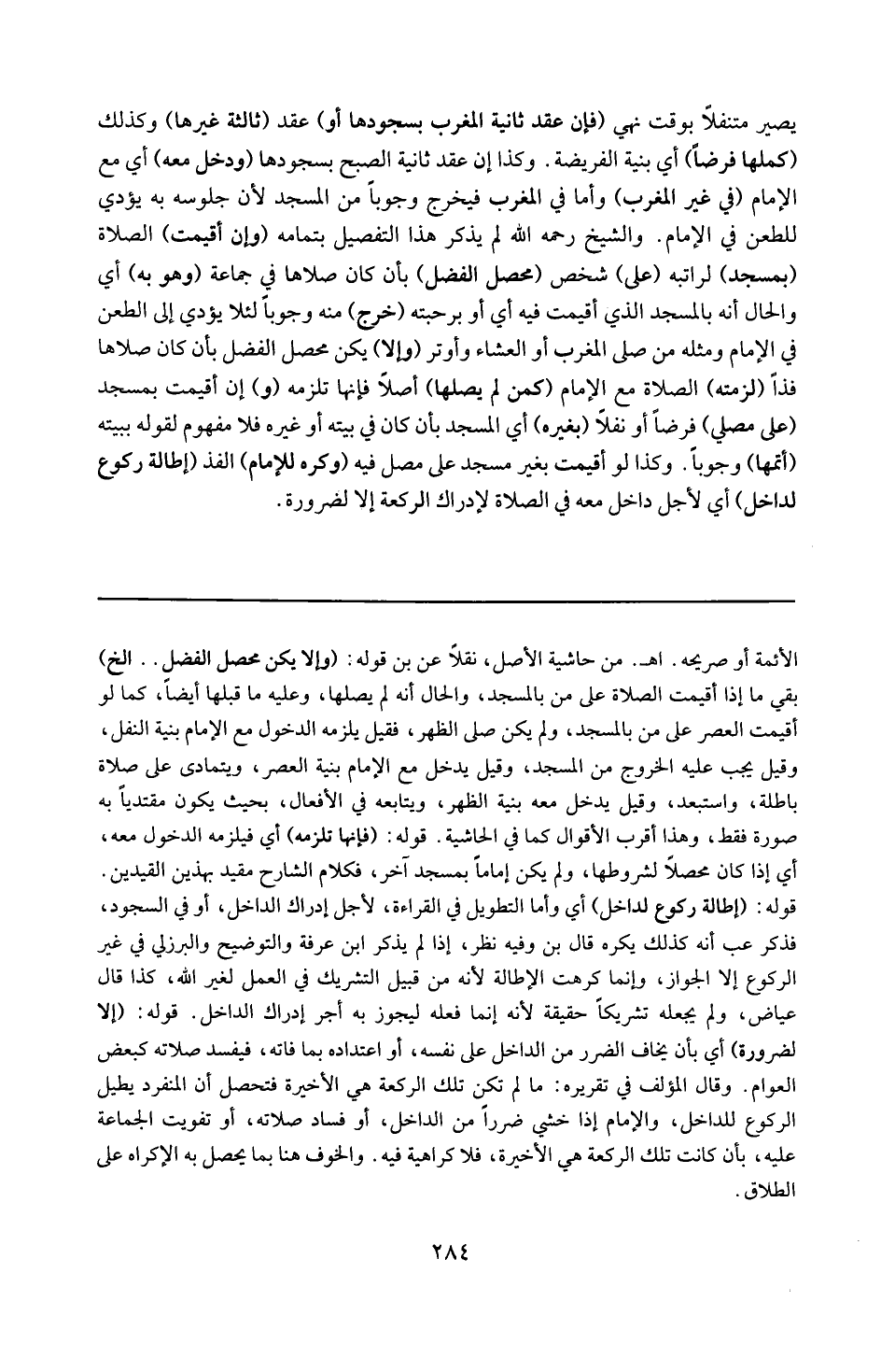 قوله : 16 ( وإلا يكن محصل الفضل ) إلخ : بقي ما إذا أقيمت الصلاة على من بالمسجد ، والحال أنه لم يصلها وعليه ما قبلها أيضاً كما لو أقيمت العصر على من بالمسجد ، ولم يكن صلى الظهر فقيل : يلزمه الدخول مع الإمام بنية النفل ، وقيل : يجب عليه الخروج من المسجد ، وقيل : يدخل مع الإمام بنية العصر ويتمادى على صلاة باطلة ، واستبعد ، وقيل يدخل معه بنية الظهر ، ويتابعه في الأفعال بحيث يكون مقتدياً به صورة فقط ، وهذا أقرب الأقوال ، كما في الحاشية .
