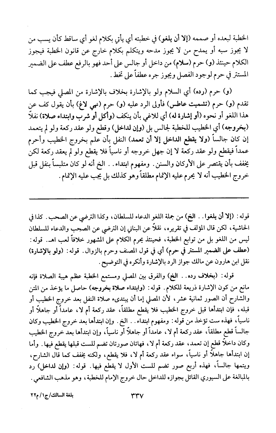 قوله : 16 ( إلا أن بلغو ) إلخ : من جملة اللغو : الدعاء للسلطان ! وكذا الترضي عن الصحب كذا في الحاشية ، لكن قال المؤلف في تقريره نقلاً عن البناني : إن الترضي عن الصحب والدعاء للسلطان ليس من اللغو ، بل من توابع الخطبة فحينئذ يحرم الكلام على المشهور خلافاً لعب ( 1 هـ ) .