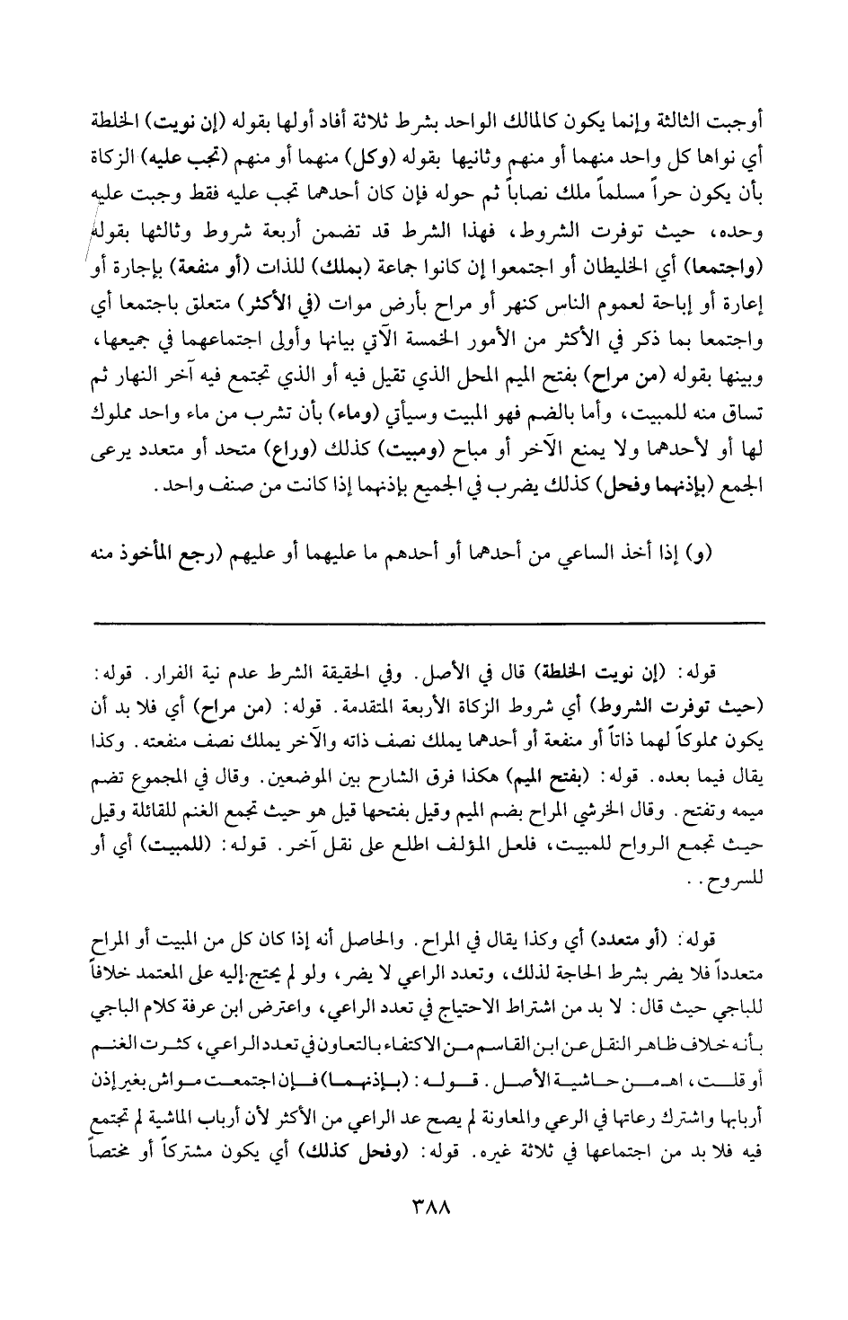 قوله : 16 ( من مراح ) : أي فلا بد أن يكون مملوكاً لهما ذاتاً أو منفعة أو أحدهما يملك نصف ذاته والآخر يملك نصف منفعته ، وكذا يقال فيما بعده .