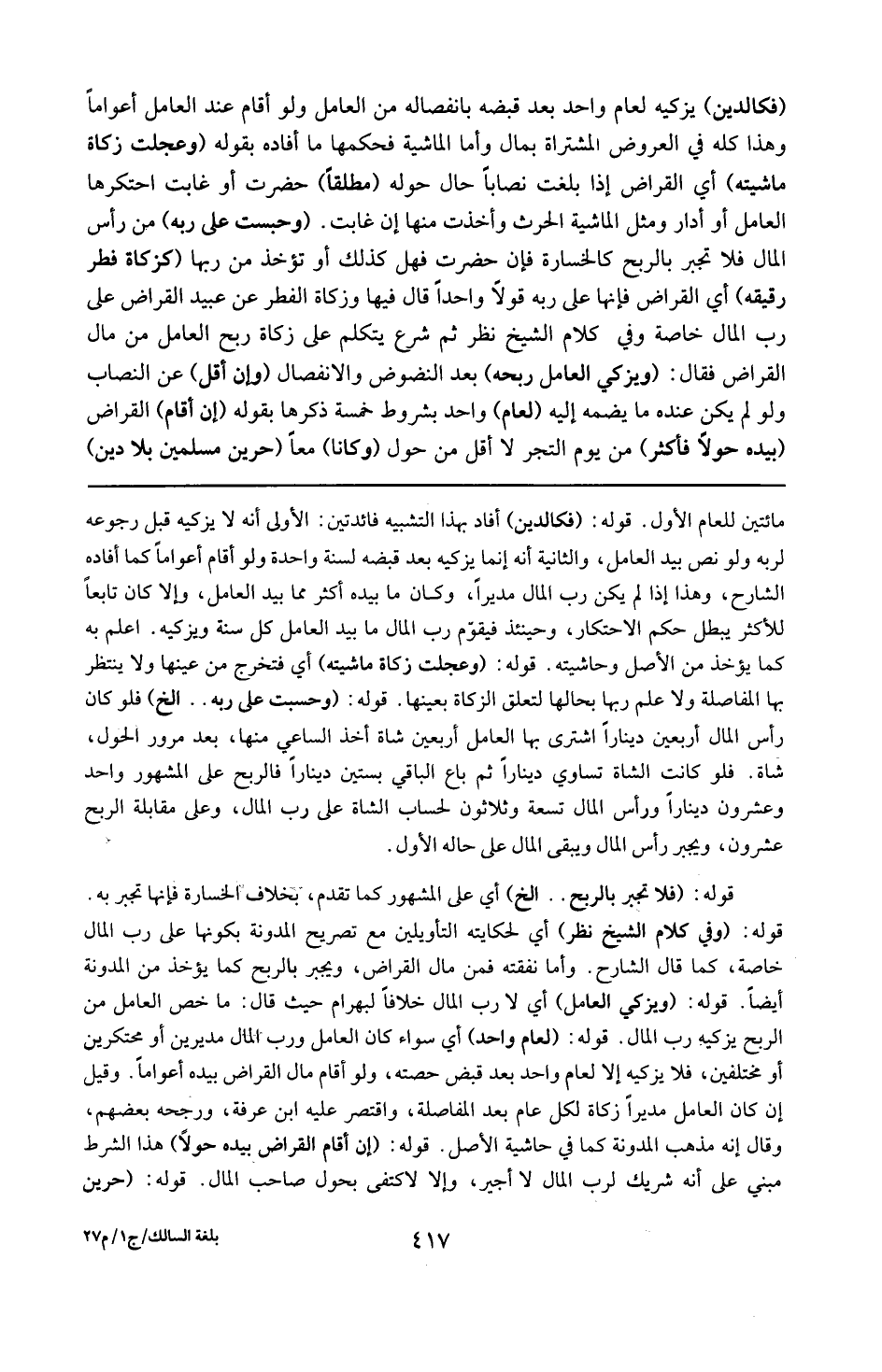 قوله : 16 ( ويزكى العامل ) : أي لا رب المال خلافاً لبهرام حيث : قال ما خص العامل من الربح يزكيه رب المال .