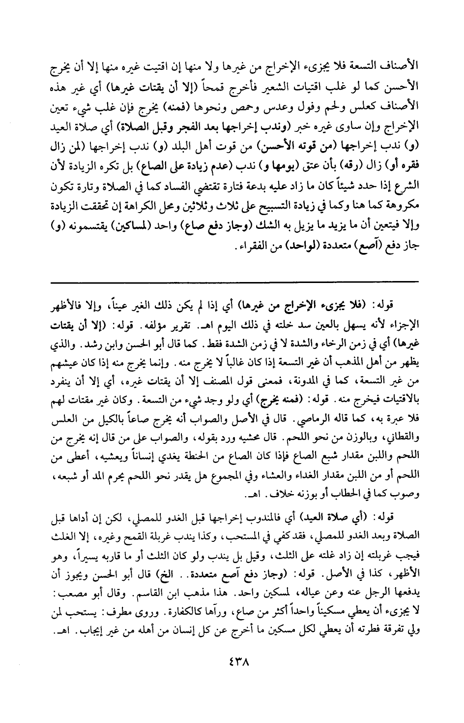 قوله : 6 ( أي صلاة العيد ) : أي فالمندوب إخراجها قبل الغدو للمصلى ، لكن إن أداها قبل الصلاة وبعد الغدو لمصلى فقد كفى في المستحب ، وكذا يندب غربلة القمح وغيره ، إلا الغلث فيجب غربلته إن زاد غلثه على الثلث ، وقبل بل يندب ولو كان الثلث أو ما قاربه يسيراً وهو الأظهر كذا في الأصل .