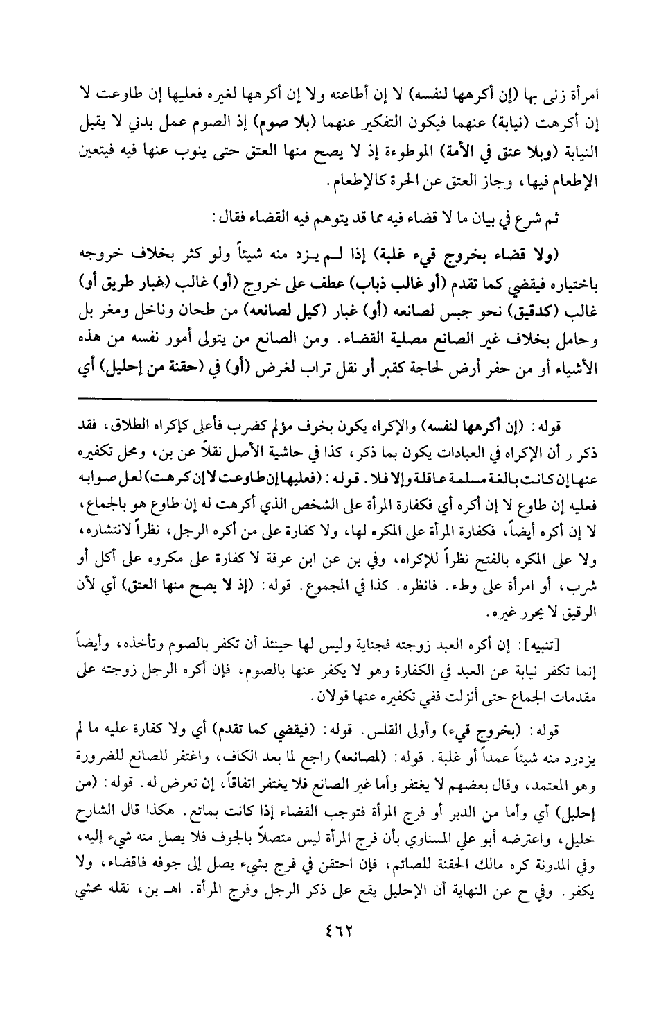 قوله : 16 ( إن أكرهها لنفسه ) : والإكراه يكون بخوف مؤلم كضرب فأعلى كإكراه الطلاق فقد ذكر ( ر ) أن الإكراه في العبادات يكون بما ذكر ، كذا في حاشية الأصل نقلاً عن ( بن ) ، ومحل تكفيره عنها إن كانت بالغة مسلمة عاقلة وإلا فلا .